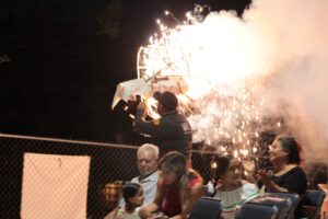Posteriormente, el espacio se llenó de colorido con la quema del torito y el espectáculo de los fuegos artificiales que iluminaron la noche en un ambiente de fiesta, evitando el ruido de cohetones, en el cuidado de las mascotas de nuestras y nuestros vecinos.