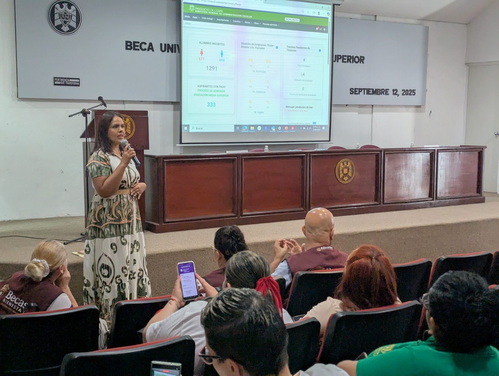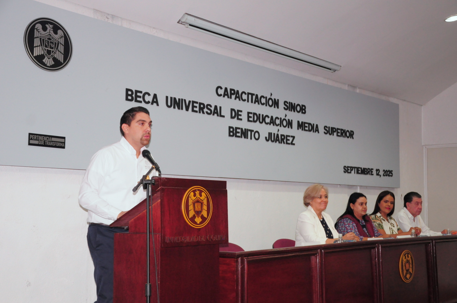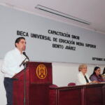 Este fin de semana la Universidad de Colima, en coordinación con la oficina estatal de la Coordinación Nacional de Becas para el Bienestar Benito Juárez, llevó a cabo una jornada de capacitación dirigida a 35 directores y 38 encargados del área de becas del nivel medio superior. El objetivo fue fortalecer sus conocimientos sobre el Sistema Integral para la Operación de Becas Benito Juárez. La actividad tuvo lugar en el auditorio de la Facultad de Ciencias de la Educación.