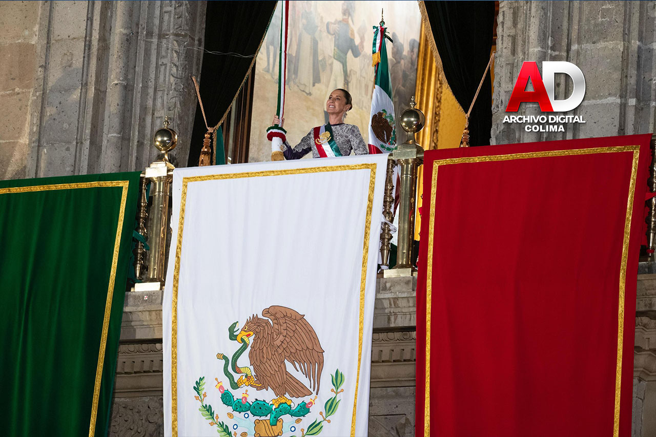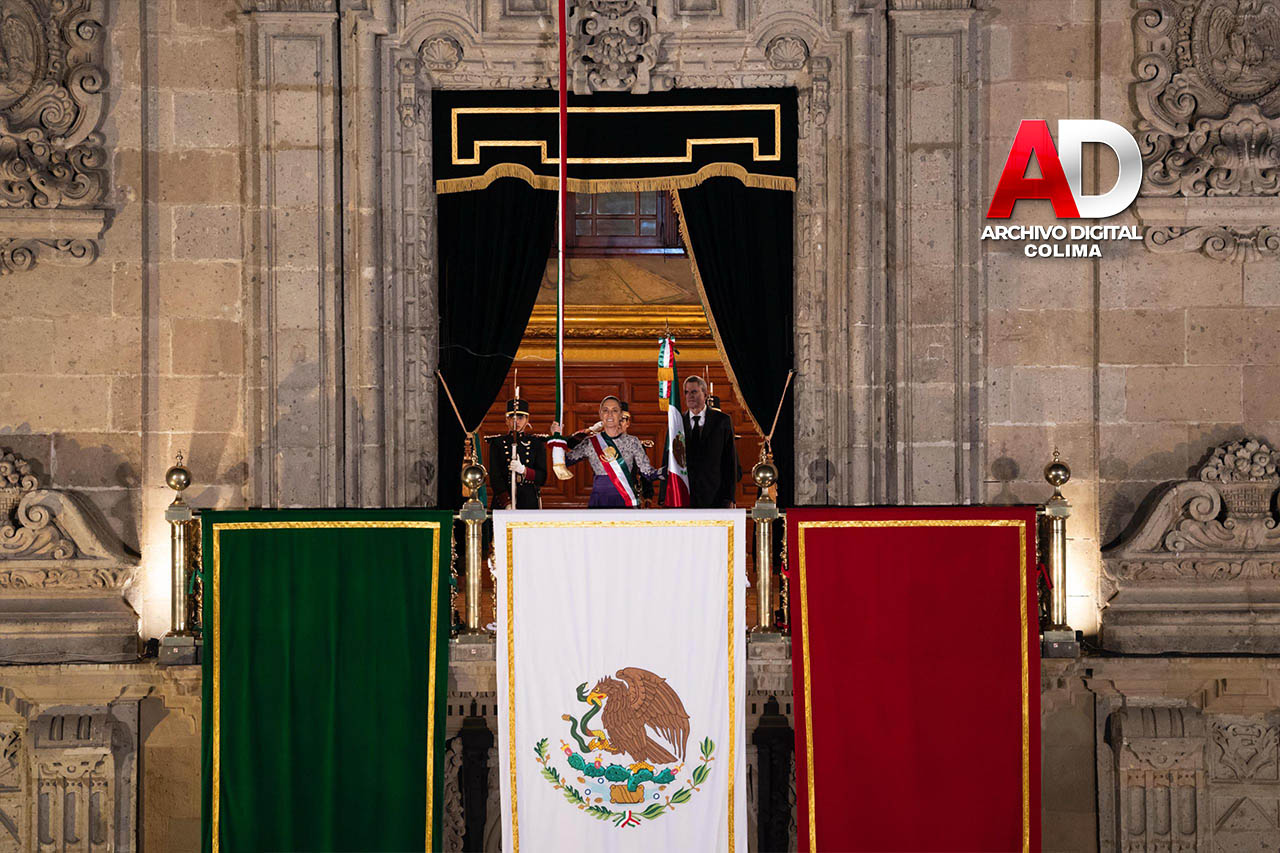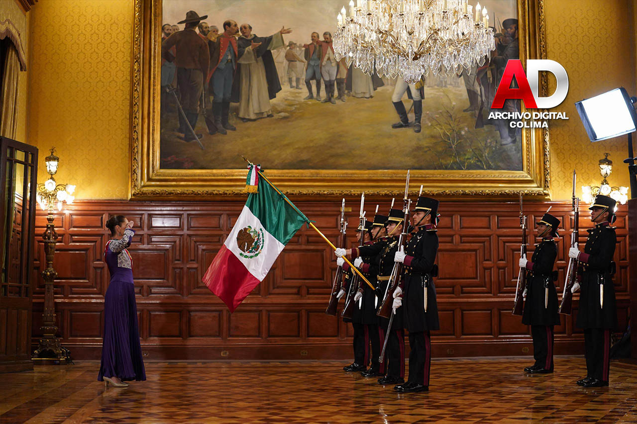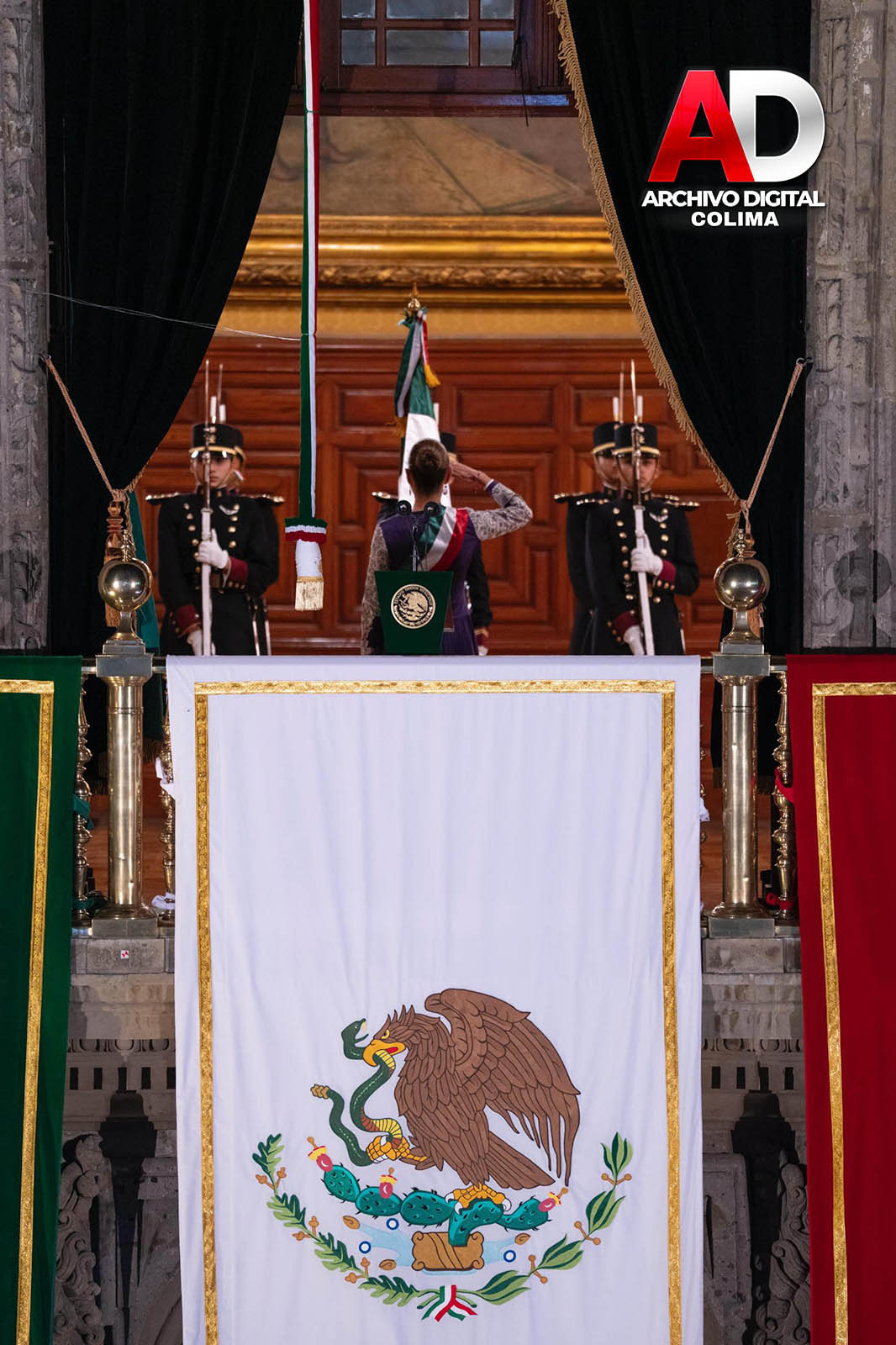Ante aproximadamente 280 mil mexicanas y mexicanos que se dieron cita en el magno Zócalo de la Ciudad de México, la Jefa del Ejecutivo Federal ondeó en el balcón principal de Palacio Nacional la bandera nacional, que recibió por primera vez en la historia de mujeres militares pertenecientes al Heroico Colegio Militar: de la abanderada teniente de Policía Militar, Jennifer Samantha Torres Jiménez y de la escolta conformada por las cabo de cadetes Samira Michel Delgadillo Chávez; Itzel Sarahi Martínez Tozcano; Karla Paola Guevara Pérez; y las cadetes Andrea Carvajal Audelo y Yetzelany Gallegos Ortiz.