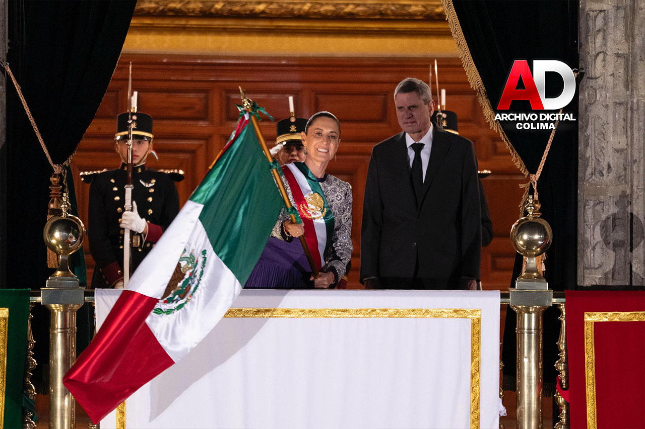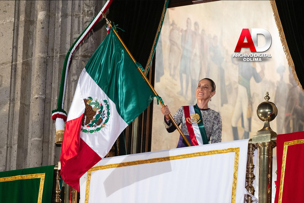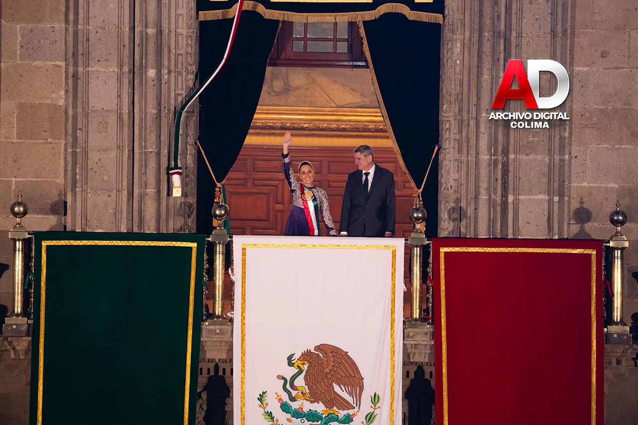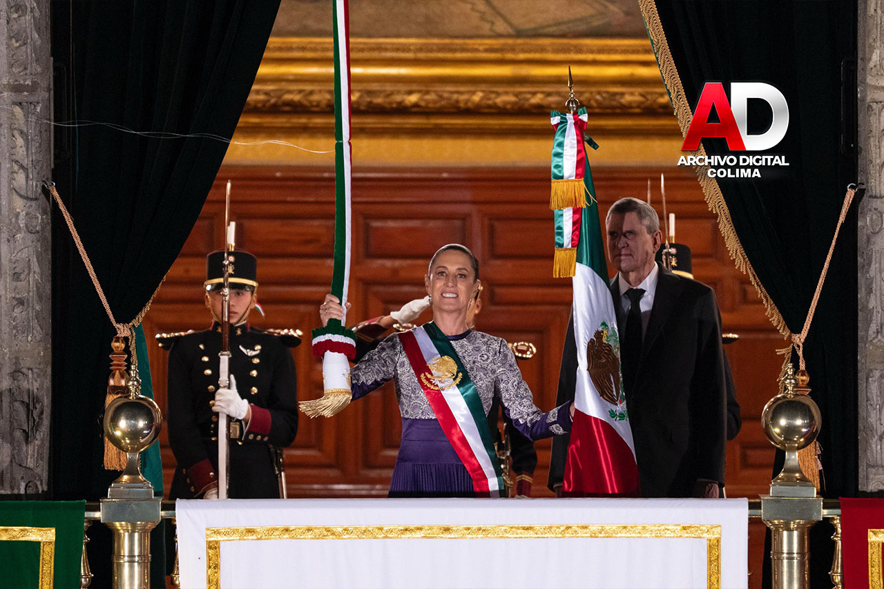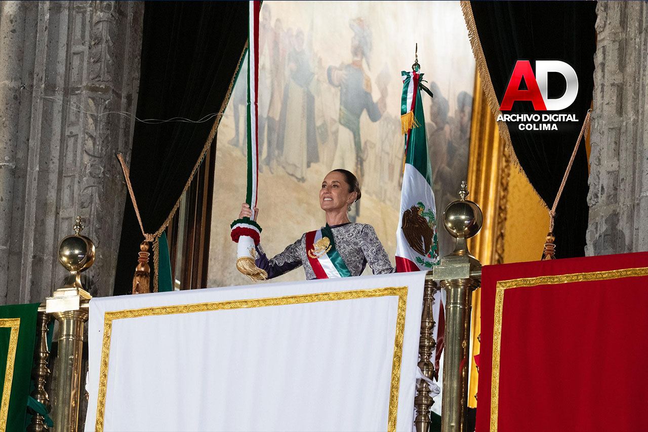 Ante aproximadamente 280 mil mexicanas y mexicanos que se dieron cita en el magno Zócalo de la Ciudad de México, la Jefa del Ejecutivo Federal ondeó en el balcón principal de Palacio Nacional la bandera nacional, que recibió por primera vez en la historia de mujeres militares pertenecientes al Heroico Colegio Militar: de la abanderada teniente de Policía Militar, Jennifer Samantha Torres Jiménez y de la escolta conformada por las cabo de cadetes Samira Michel Delgadillo Chávez; Itzel Sarahi Martínez Tozcano; Karla Paola Guevara Pérez; y las cadetes Andrea Carvajal Audelo y Yetzelany Gallegos Ortiz.
