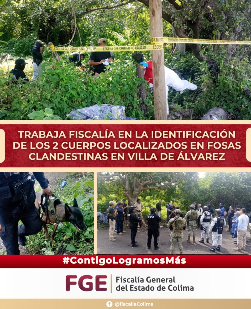 Como resultado de un operativo de búsqueda de personas con reporte de desaparición implementado por la Fiscalía General del Estado en un predio cercano en la carretera Villa de Álvarez- Minatitlán, personal especializado trabaja en la identificación de los 2 cuerpos que han sido localizados en ese lugar.