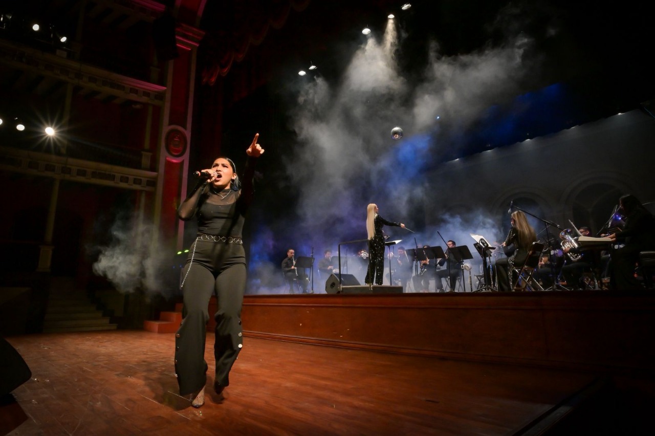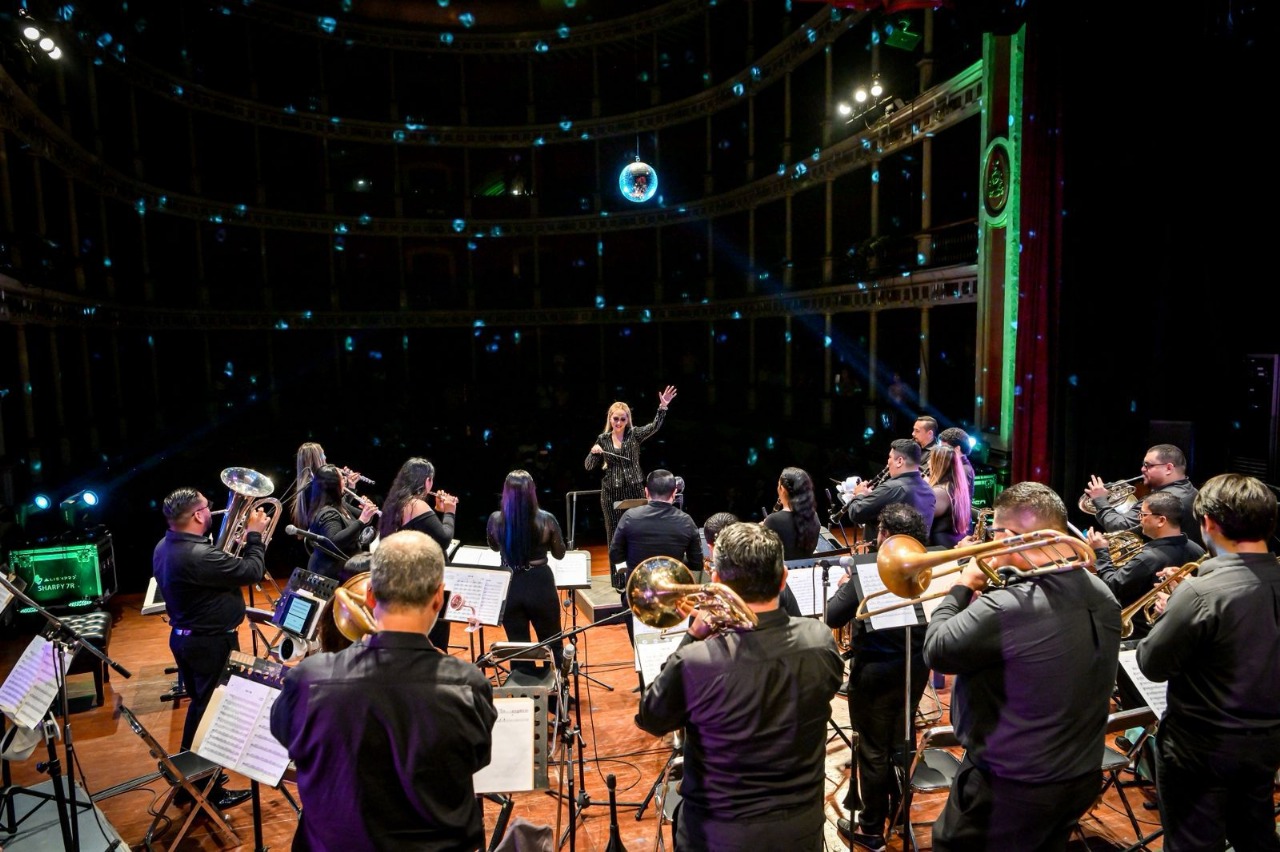 Bajo la dirección de Perla Cortés Castillo, la Banda Sinfónica del Gobierno del Estado de Colima interpretó temas como Love is in the air, Stayin Alive y popurrís con los grandes hits de Abba y Queen.