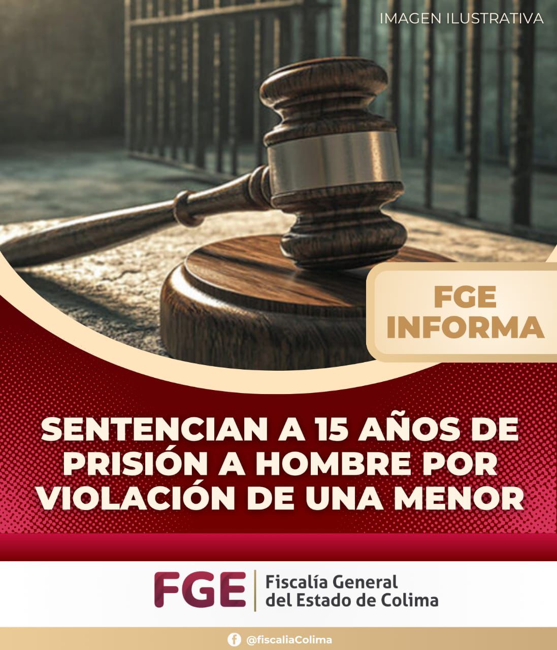 La Fiscalía General del Estado (FGE) obtuvo una sentencia condenatoria de 15 años de prisión en contra de Elías “N”, por el delito de vi0l4ción cometido en agravio de una menor de edad.