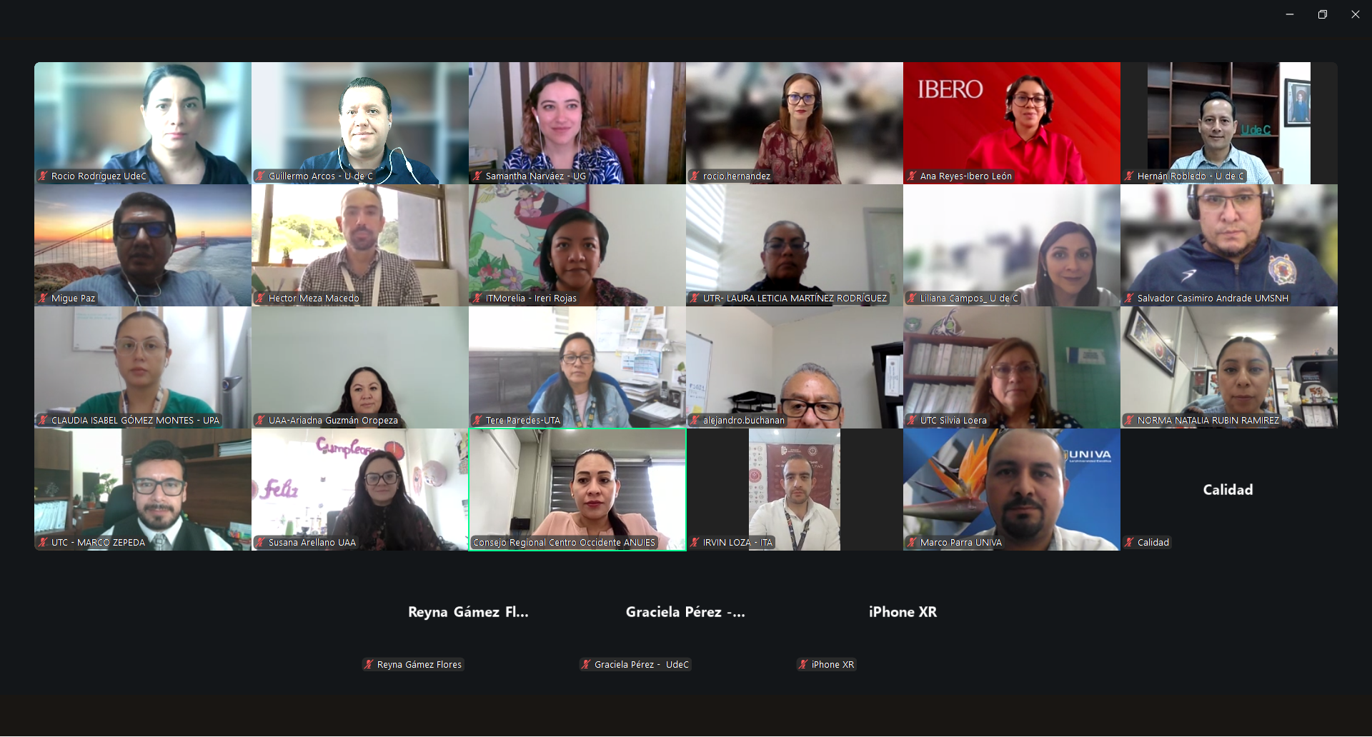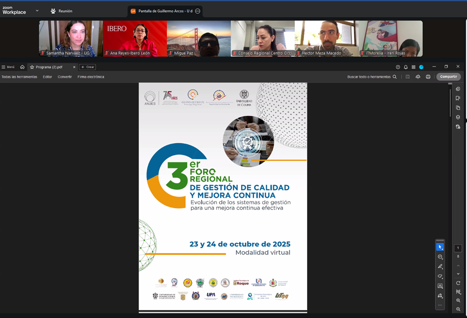 La Red de Gestión de Calidad y Mejora Continua de la Región Centro-Occidente de la ANUIES -cuya coordinación tiene la Universidad de Colima (UdeC)-, realizó este jueves 25 de septiembre su Segunda Reunión Extraordinaria en modalidad virtual. Los temas abordados fueron el ingreso de 12 nuevos ingresos, la revisión de la estructura del Plan de Trabajo 2026 y los preparativos para el 3er Foro Regional de la Red.