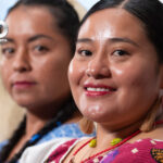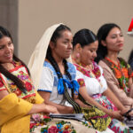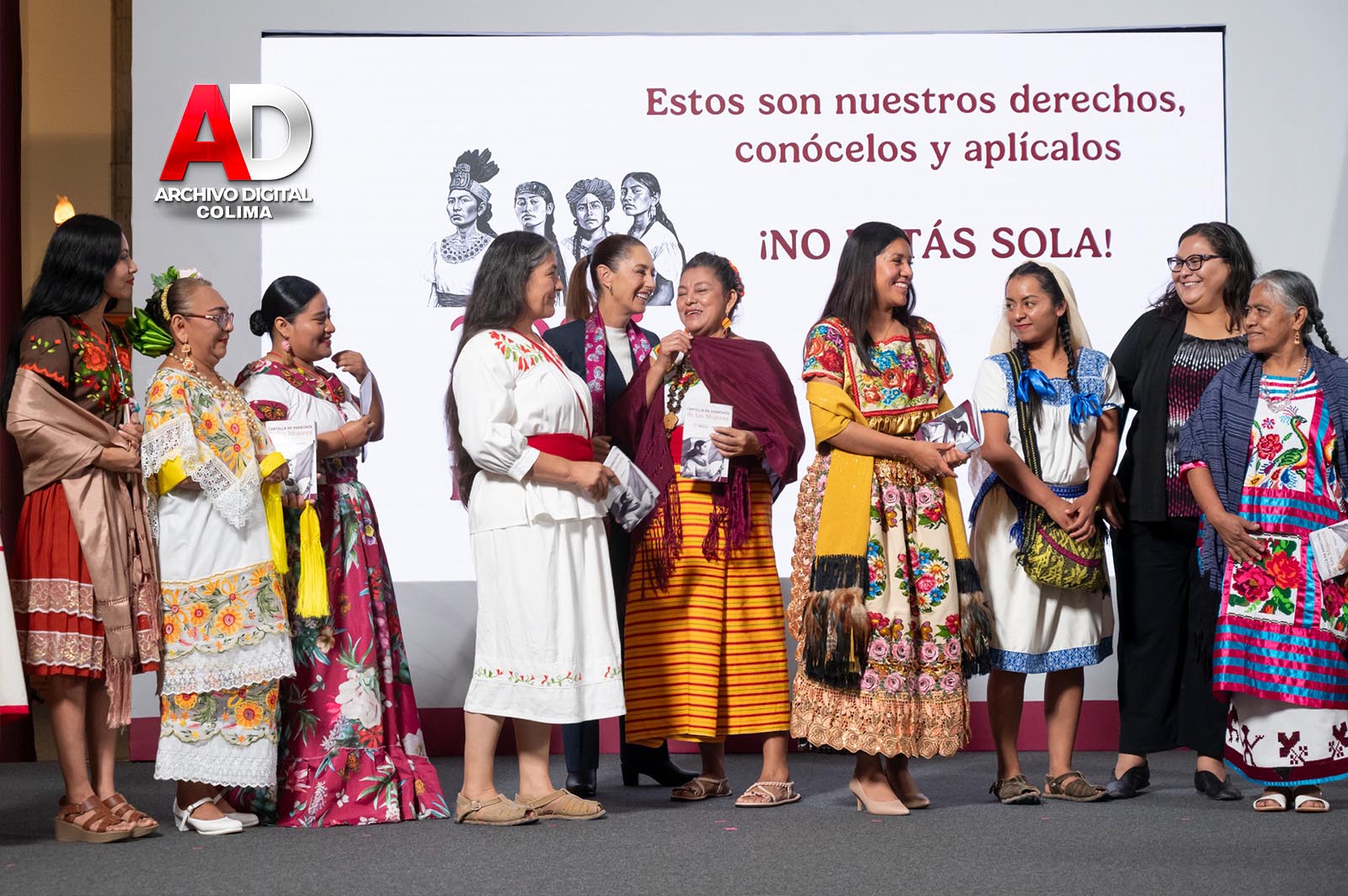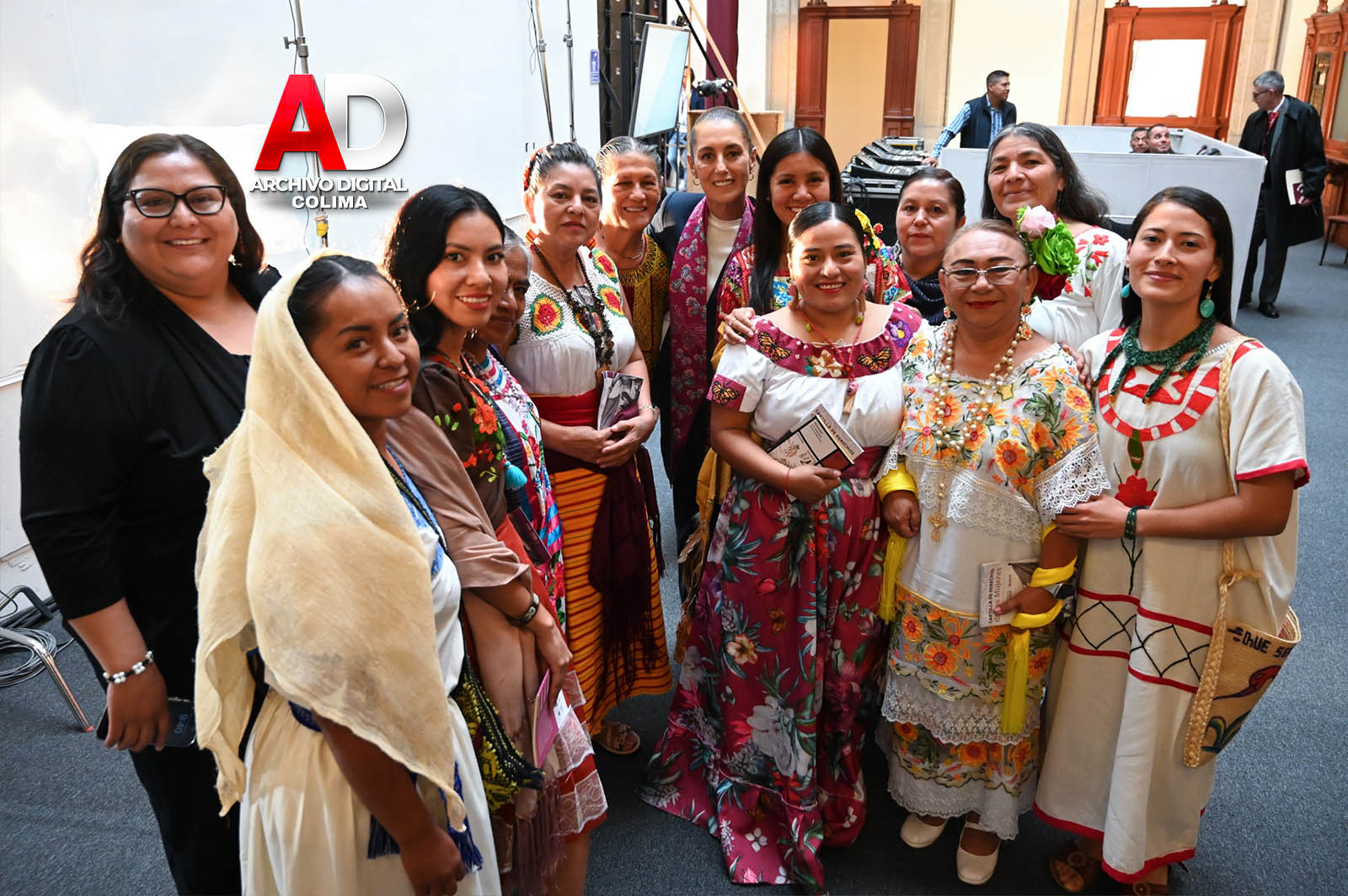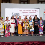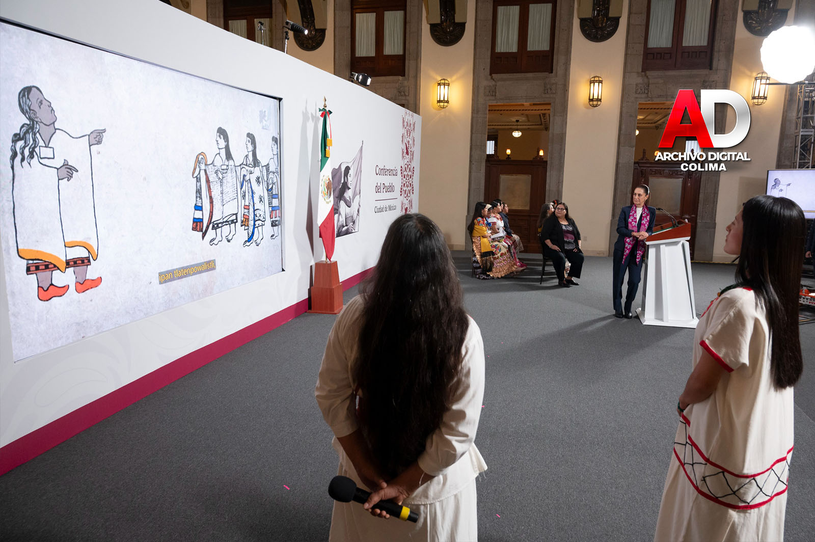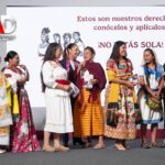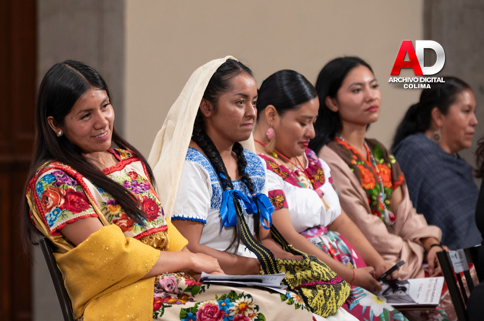 En la conferencia matutina, leyeron la Cartilla de los Derechos de las Mujeres, que ha sido traducida a 35 lenguas originarias: Angélica González Pinillos en náhuatl; Teresa de Jesús Ríos García en mazateco; Marisela González González en otomí; Jéssica Guadalupe Espicio Sebastián en p’urhépecha; Lucía Eugenio Bibiano en popoluca; María del Carmen Álvarez Juárez en chichimeco; María Arcelia Rodríguez Torres en yokot´an; Agustina del Carmen Tah Pech en maya y Dulce Belem Romero Castillo en yaqui.