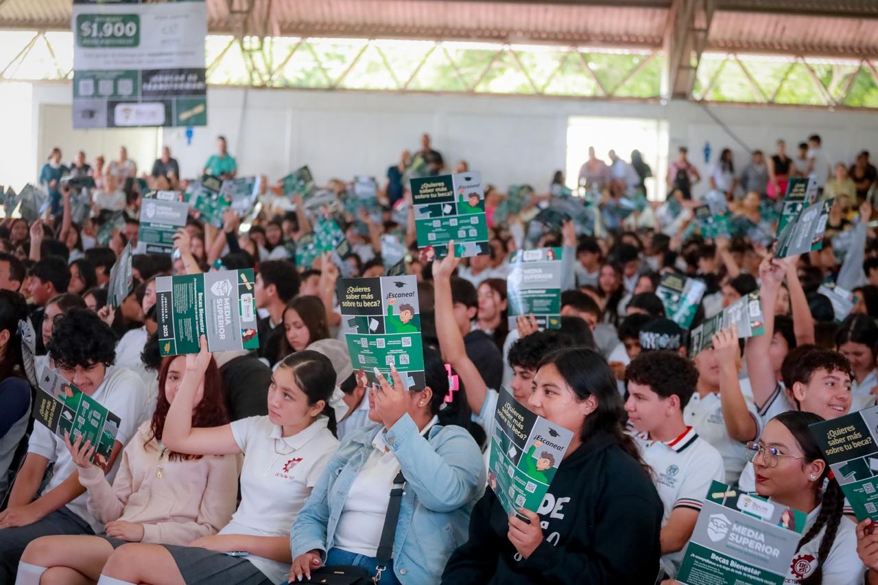 Destacó que el acompañamiento económico que brinda este programa es clave para que las y los jóvenes puedan completar sus estudios de media superior. “Hay tres momentos clave en su trayectoria académica: ingresar, permanecer y egresar. En los dos últimos, permanecer y egresar, la beca ‘Benito Juárez’ es determinante para que ustedes logren concluir con éxito”, expresó.