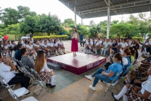 La tarde de este martes, la presidenta municipal de Manzanillo, Rosa María Bayardo Cabrera, informó a las y los estudiantes del Isenco Manzanillo sobre la nueva convocatoria de UniBeca, el programa que beneficia a todas las y los estudiantes de universidades públicas con 9 mil pesos.
