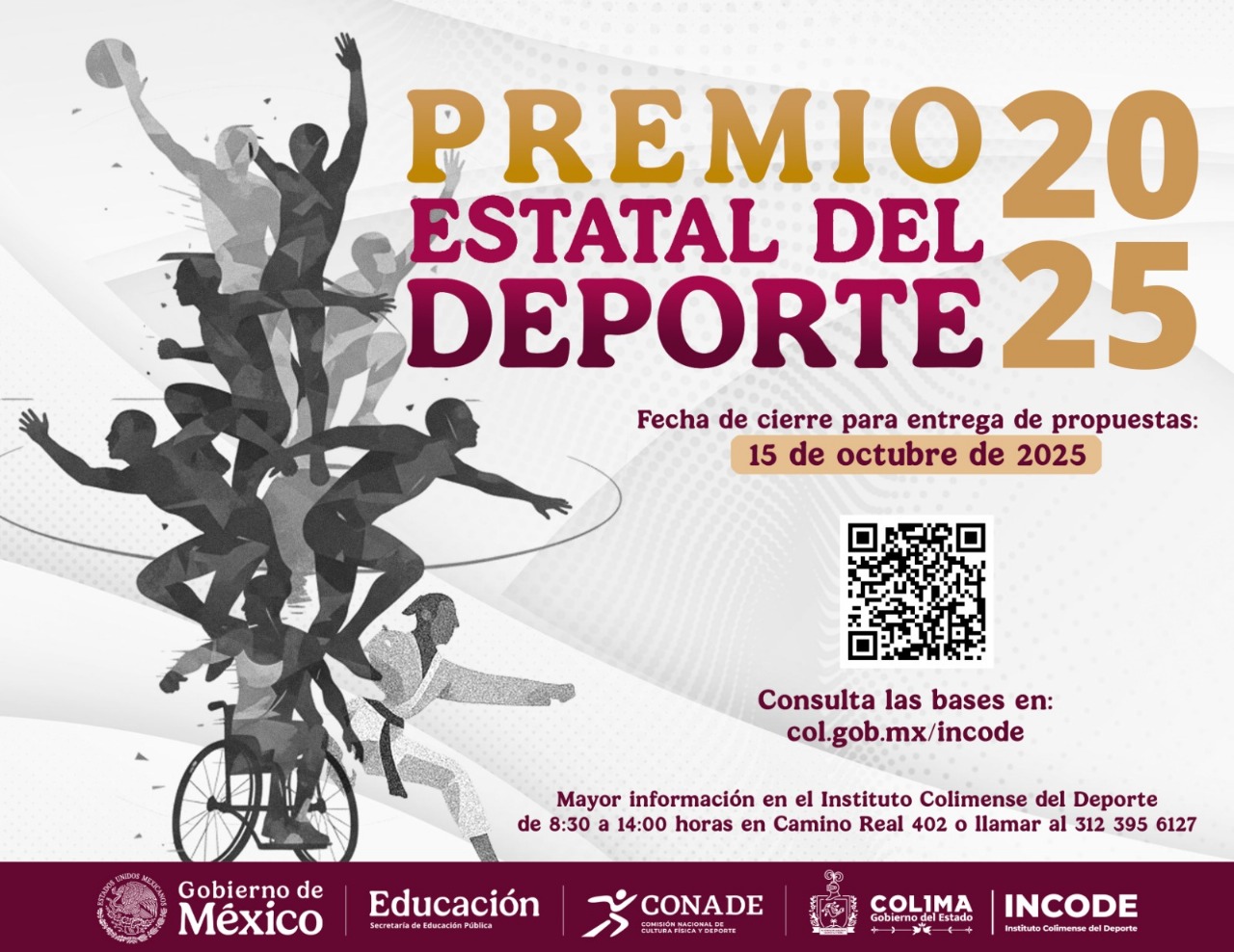 Para mayor información en la página web del Incode col.gob.mx/incode en el apartado de convocatorias o al teléfono 312-150-5028 en conformidad con lo establecido por la Subdirección de Calidad para el Deporte de la Conade.