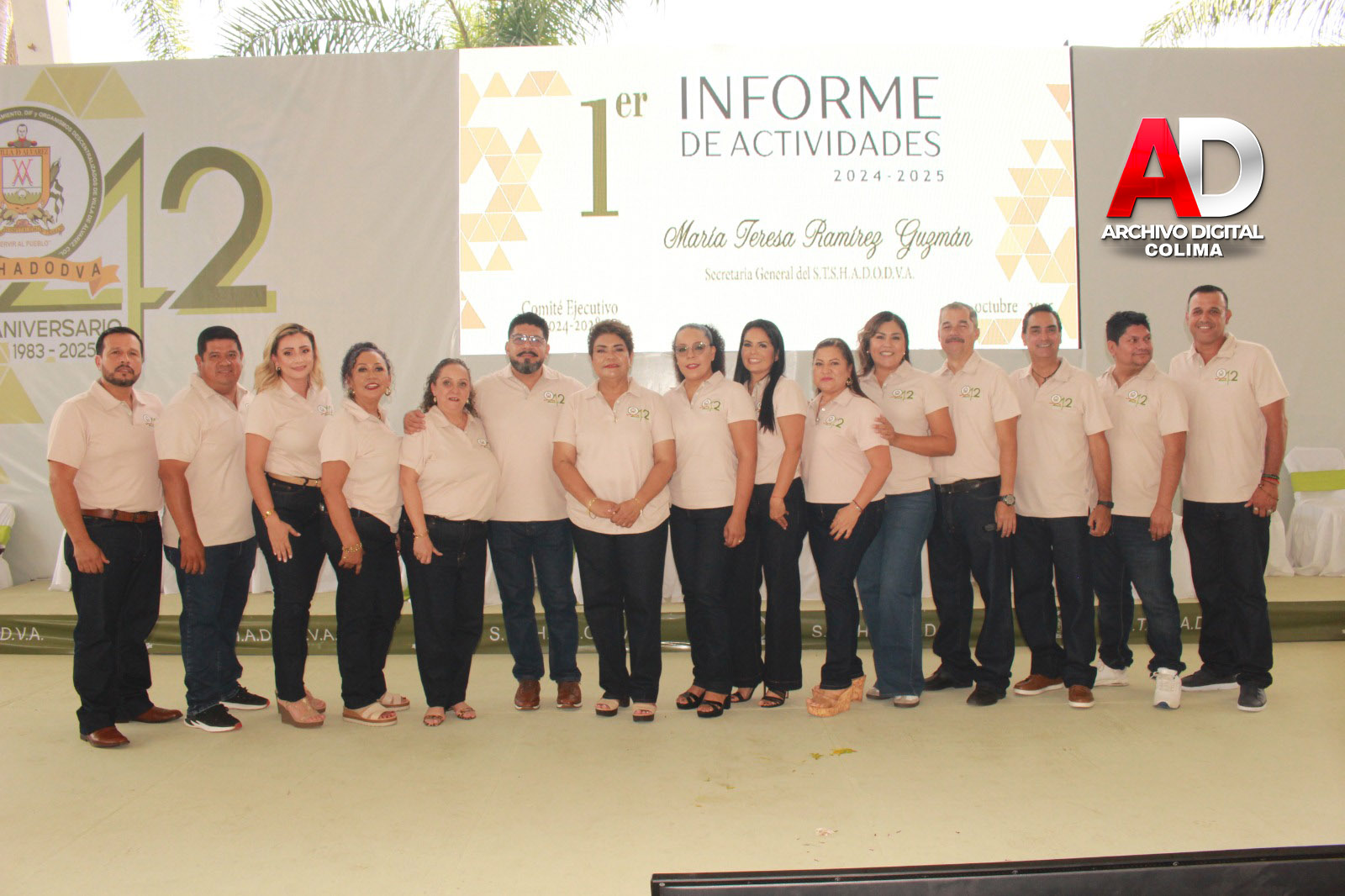 Este viernes 03 de octubre, María Teresa Ramírez Guzmán, Secretaria General del Sindicato de Trabajadores al Servicio del Honorable Ayuntamiento, DIF y Organismos Descentralizados de Villa de Álvarez, rindió su Primer Informe de Labores del periodo 2024-2028, dentro del marco del XLII Aniversario de la organización sindical, este evento se desarrolló en el Csino del SNTE VI, rumbo a El Chivato en Villa de Álvarez.