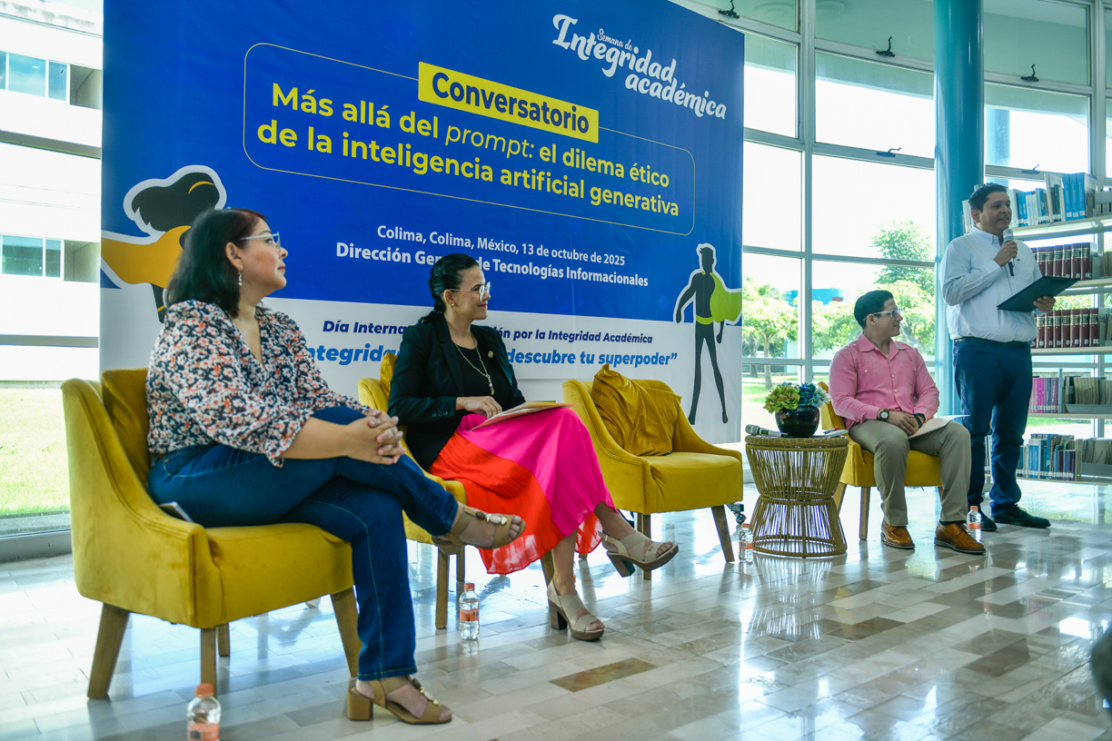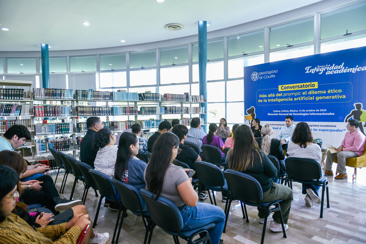 Este lunes, desde la biblioteca del Campus Norte de la Universidad de Colima, se llevó a cabo la inauguración de la Semana por la Integridad Académica: “Integridad Día a Día, Descubre tu Superpoder”. Como acto inaugural, se realizó el conversatorio “Más Allá del Prompt: el dilema ético de la Inteligencia Artificial Generativa (IAG)”.