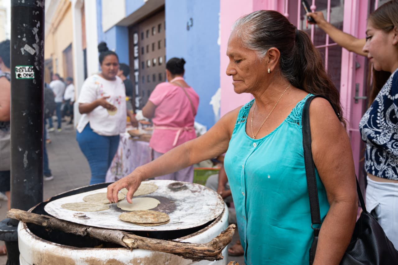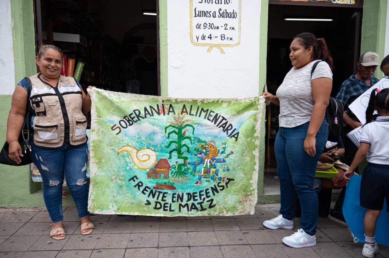 Durante el acto, las compañeras de las comunidades indígenas compartieron tortillas hechas a mano y guisos tradicionales de manera solidaria a más de 200 personas, recordando que la milpa es el corazón de nuestra cultura solidaria y una alternativa viva frente al modelo alimentario impuesto por las corporaciones.