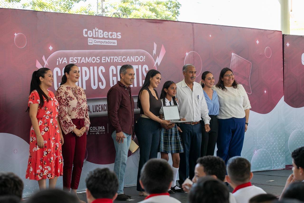 “Esta entrega de una computadora, es una herramienta que para ustedes es muy importante ahora que entran a la secundaria, les va a ayudar mucho en sus tareas, en sus trabajos de investigación, en muchos proyectos que van a hacer en la secundaria y ya no van a tener pretexto (…), ya van a poder hacer sus trabajos”, expresó la mandataria colimense.