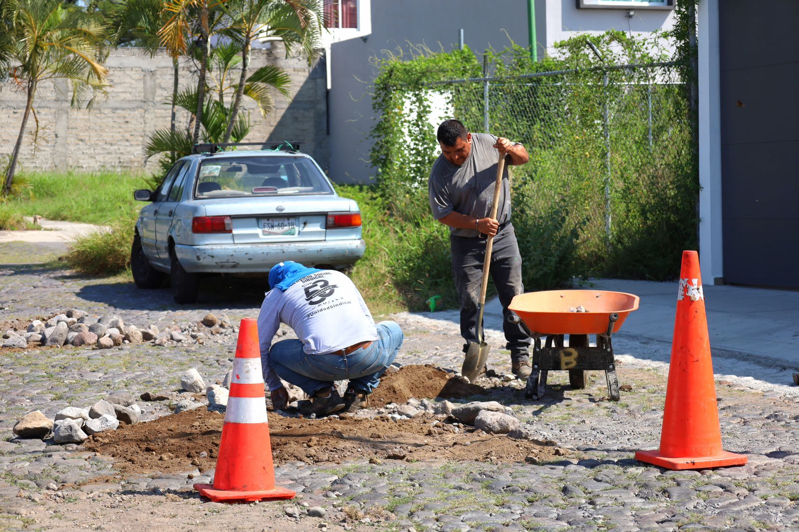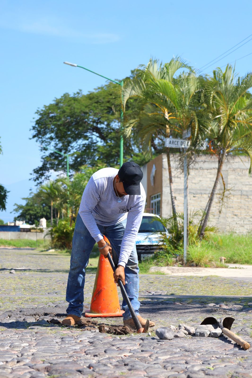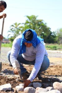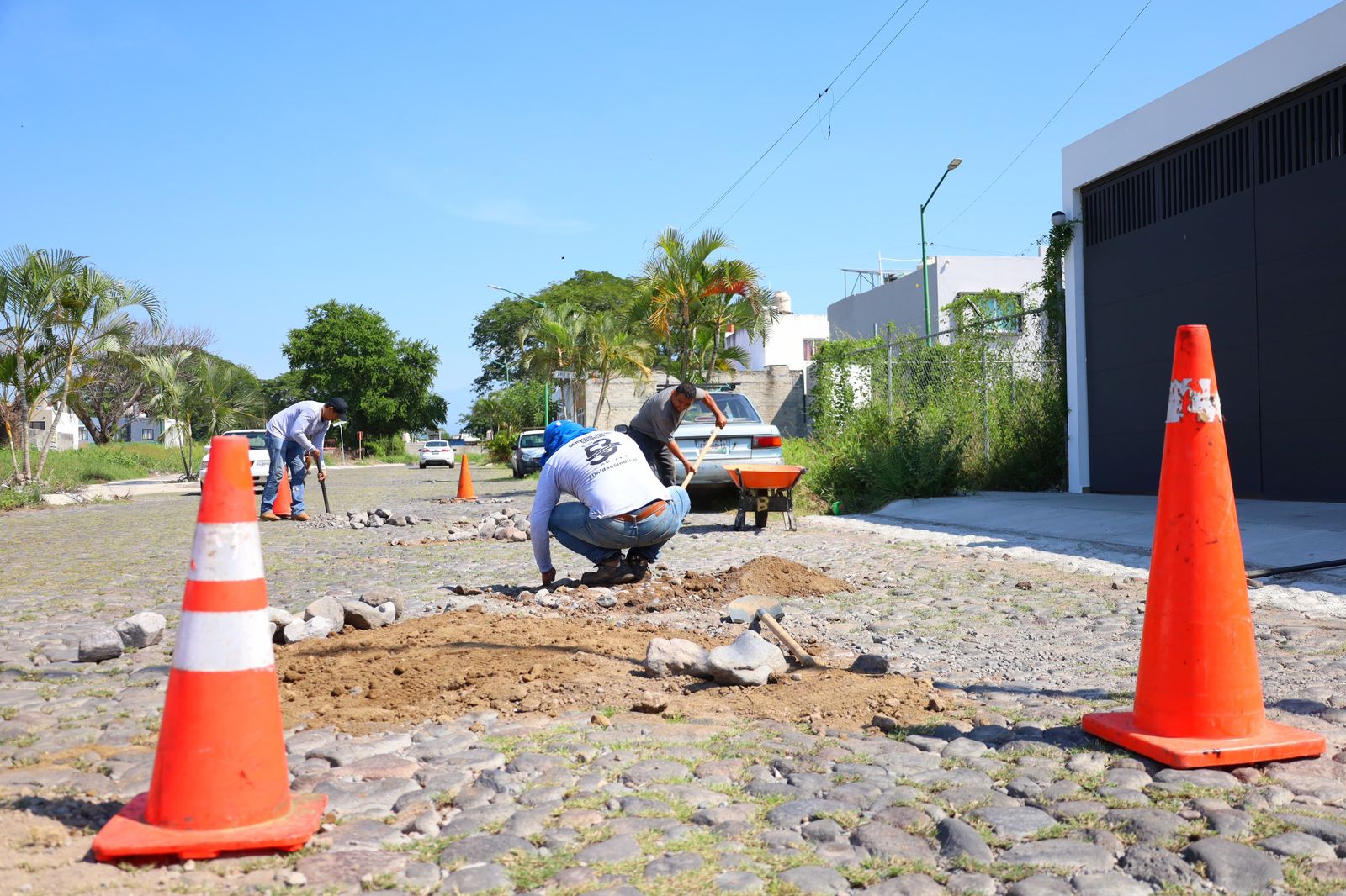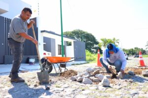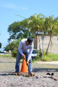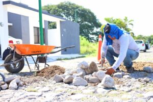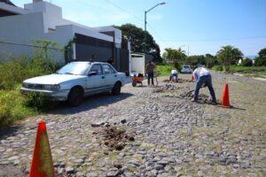 Además, trabajan en las diferentes colonias y comunidades de la capital, este lunes las cuadrillas de trabajadores municipales estuvieron tapando los baches con empedrado en las colonias Prados y bosques del Sur.