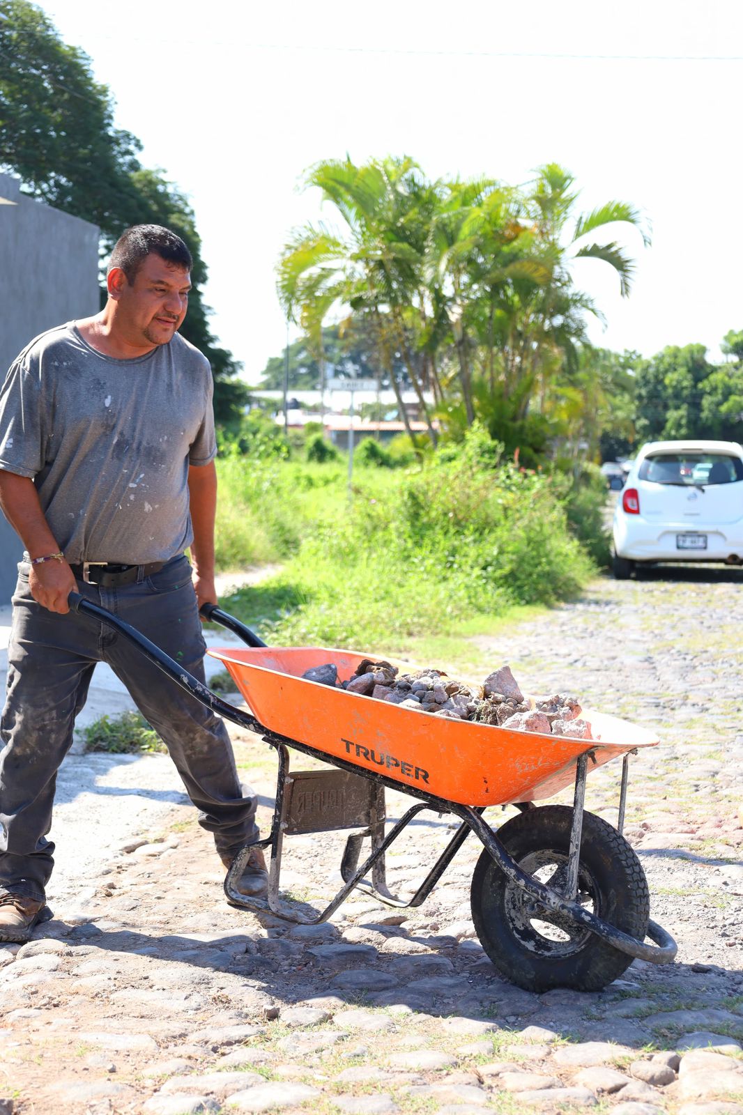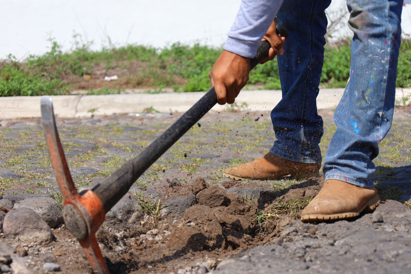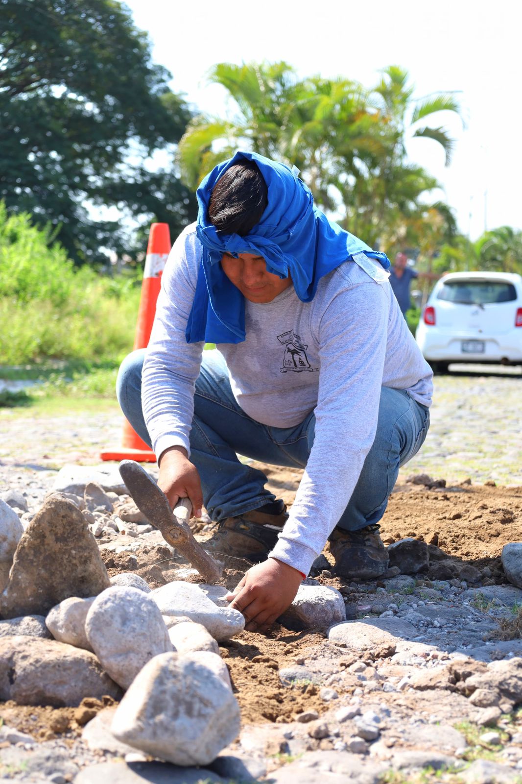Además, trabajan en las diferentes colonias y comunidades de la capital, este lunes las cuadrillas de trabajadores municipales estuvieron tapando los baches con empedrado en las colonias Prados y bosques del Sur.