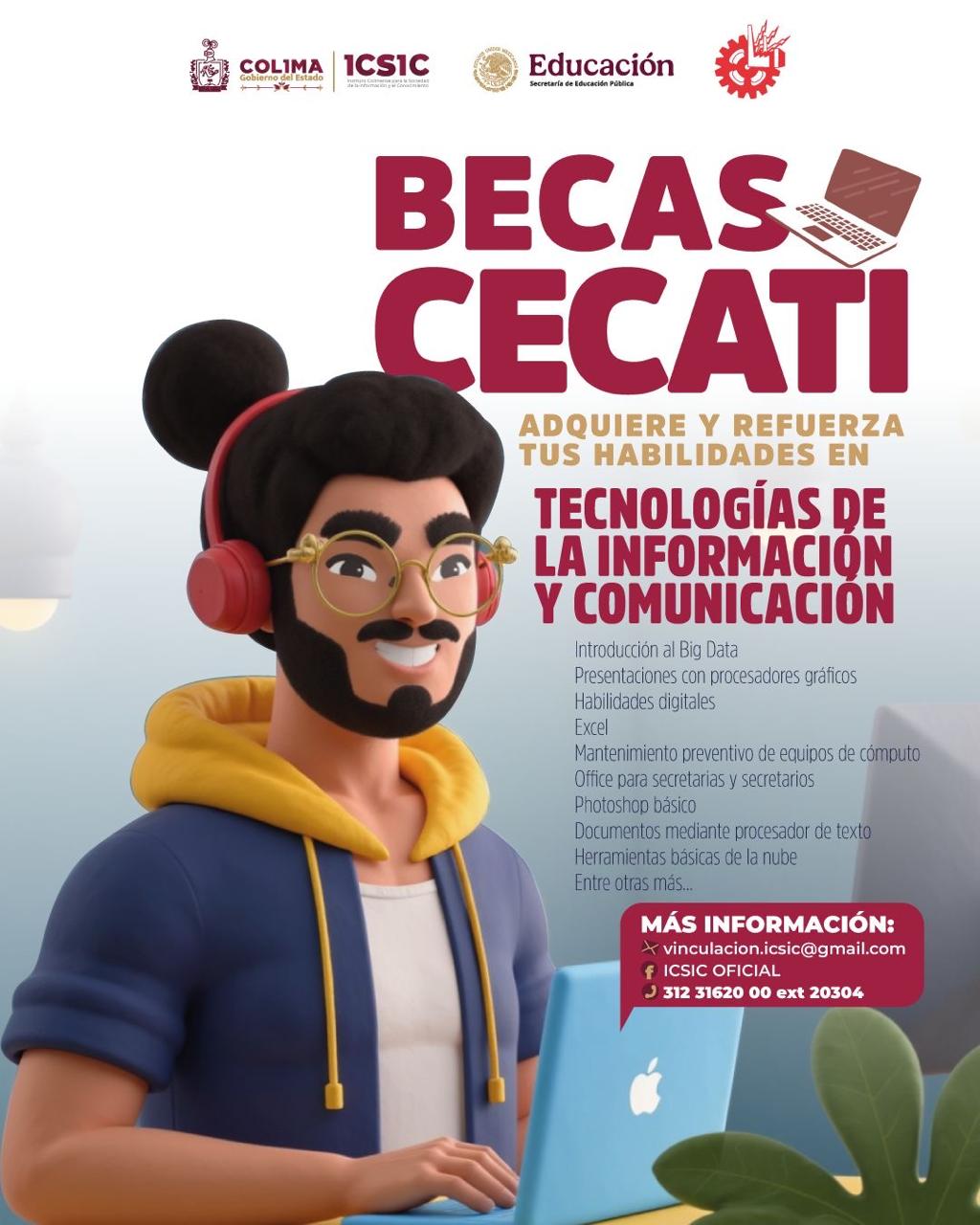 Para contribuir al desarrollo de una sociedad más informada, preparada e incluyente, el Gobierno del Estado de Colima, a través del Instituto Colimense para la Sociedad de la Información y el Conocimiento (ICSIC), impulsa una estrategia de colaboración con los Centros de Capacitación para el Trabajo Industrial (Cecati) en la entidad, mediante la cual se otorgan becas del 50% de descuento en cursos de formación relacionados con las tecnologías de la información y la comunicación.