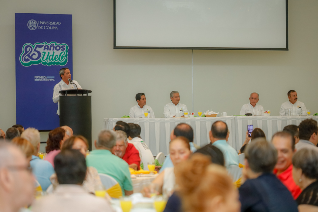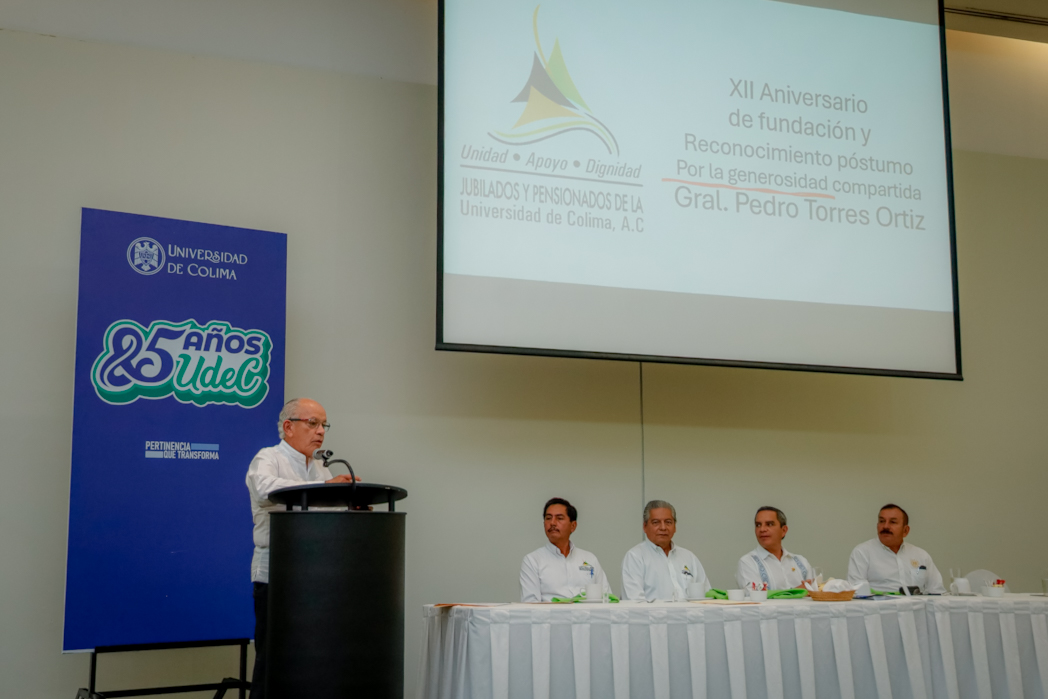 Sergio Venancio, en su intervención, explicó que la Asociación reconoció al general Torres Ortiz porque “al fundar nuestra Universidad desencadenó una serie de eventos sin precedente en la historia de Colima, que han llevado a la entidad a un nivel de desarrollo nunca imaginado en esa época. Nada más digno para conmemorar el 85 Aniversario de la Universidad de Colima y el décimo segundo aniversario de Jubilados y Pensionados, que reconocer al autor de esta gran obra”.