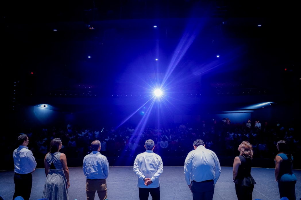 Acompañaron al rector en el presídium: Joel Nino, secretario general; Érika Ulibarri, coordinadora general Administrativa y Financiera; Jessica Morales, Tesorera; Priscilia Álvarez, directora general de Recursos Humanos y Camilo García, director general de Servicios Universitarios. Como invitados estuvieron Blanca Liliana Díaz, presidenta del Voluntariado Universitario y las y los líderes de los sectores universitarios, además de las delegadas y los delegados universitarios.