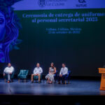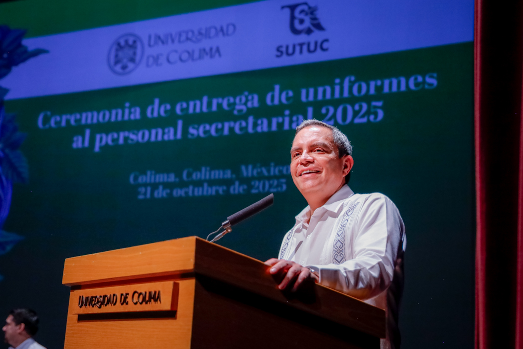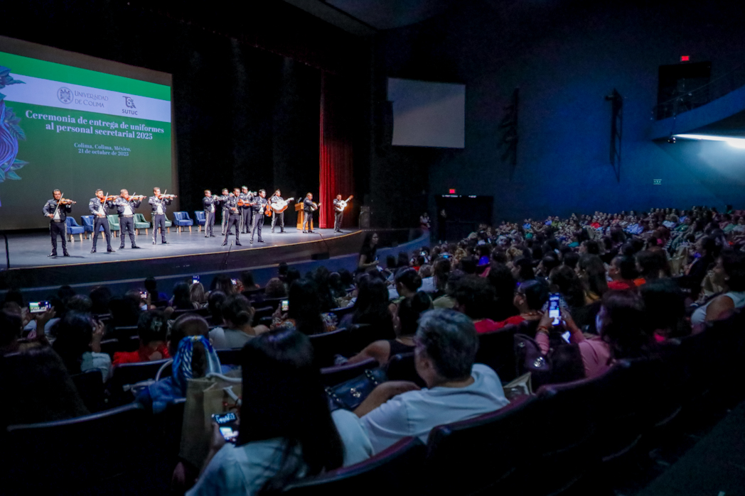 El personal secretarial de la Universidad de Colima recibió 315 paquetes de uniformes, con una inversión total de 747 mil 243 pesos, y disfrutó la presentación del Mariachi UdeC, durante un acto encabezado por el rector Christian Jorge Torres Ortiz Zermeño, quien destacó la labor esencial que este personal realiza en el funcionamiento cotidiano de la institución.