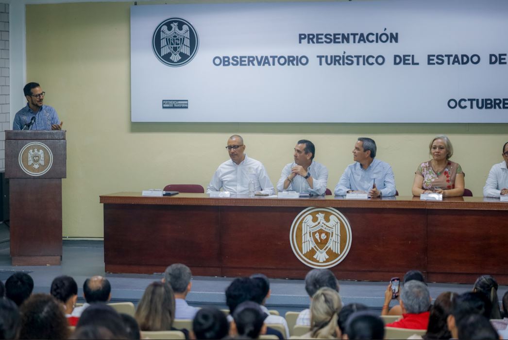 La iniciativa busca apoyar la mejora continua del sector mediante un sistema de gestión de la información que permita el seguimiento regular de indicadores clave de desempeño turístico. Presidieron el evento, Christian Jorge Torres Ortiz Zermeño, rector de la UdeC y Jorge Padilla Castillo, subsecretario de turismo del gobierno del estado de Colima.
