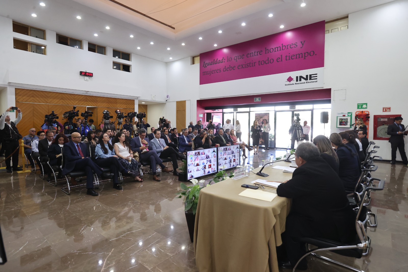 En el evento estuvieron, de manera virtual, las consejeras Carla Humphrey Jordan y Norma De La Cruz Magaña; las delegadas y delegados del INE de las 32 entidades federativas; secretarias y secretarios ejecutivos de los OPL; y, de manera presencial, integrantes de la Junta General Ejecutiva.