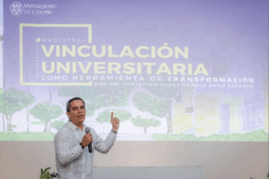 Dijo que, para enfrentar mejor las necesidades y problemas actuales, la Universidad de Colima hizo de la vinculación una herramienta de transformación social. “En ese objetivo de modificar un modelo, no simplemente un organigrama institucional, tomamos la decisión de crear la Coordinación General de Vinculación a partir de este año”.