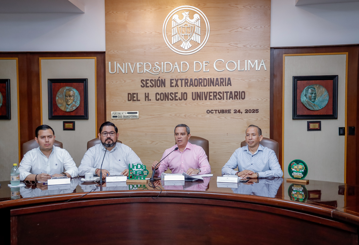 En Sesión Extraordinaria celebrada de forma híbrida este viernes 24 de octubre, el Consejo Universitario, máximo órgano de gobierno de la Universidad de Colima, aprobó diversos acuerdos orientados a fortalecer la planeación estratégica, la transparencia y sostenibilidad institucional. La sesión fue presidida por el rector Christian Jorge Torres Ortiz Zermeño y contó con la participación de 316 concejales, que representan el 89.25% del total.