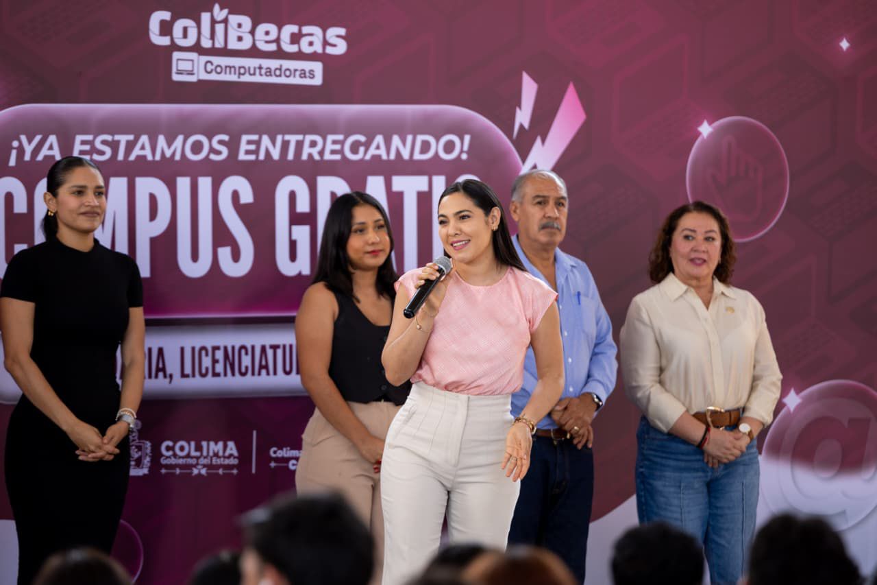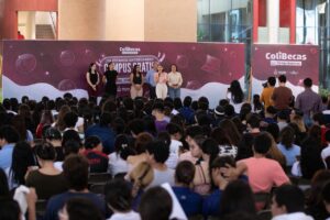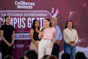 Durante el primero de los eventos programados en el Complejo Administrativo de la capital colimense, la mandataria estatal recordó que esta vertiente de #ColiBecas arrancó en el año 2022, primero con todo el alumnado de secundaria, después con todo el estudiantado de nivel profesional, y luego ya únicamente a los nuevos ingresos, así como a docentes de nivel primaria y secundaria.