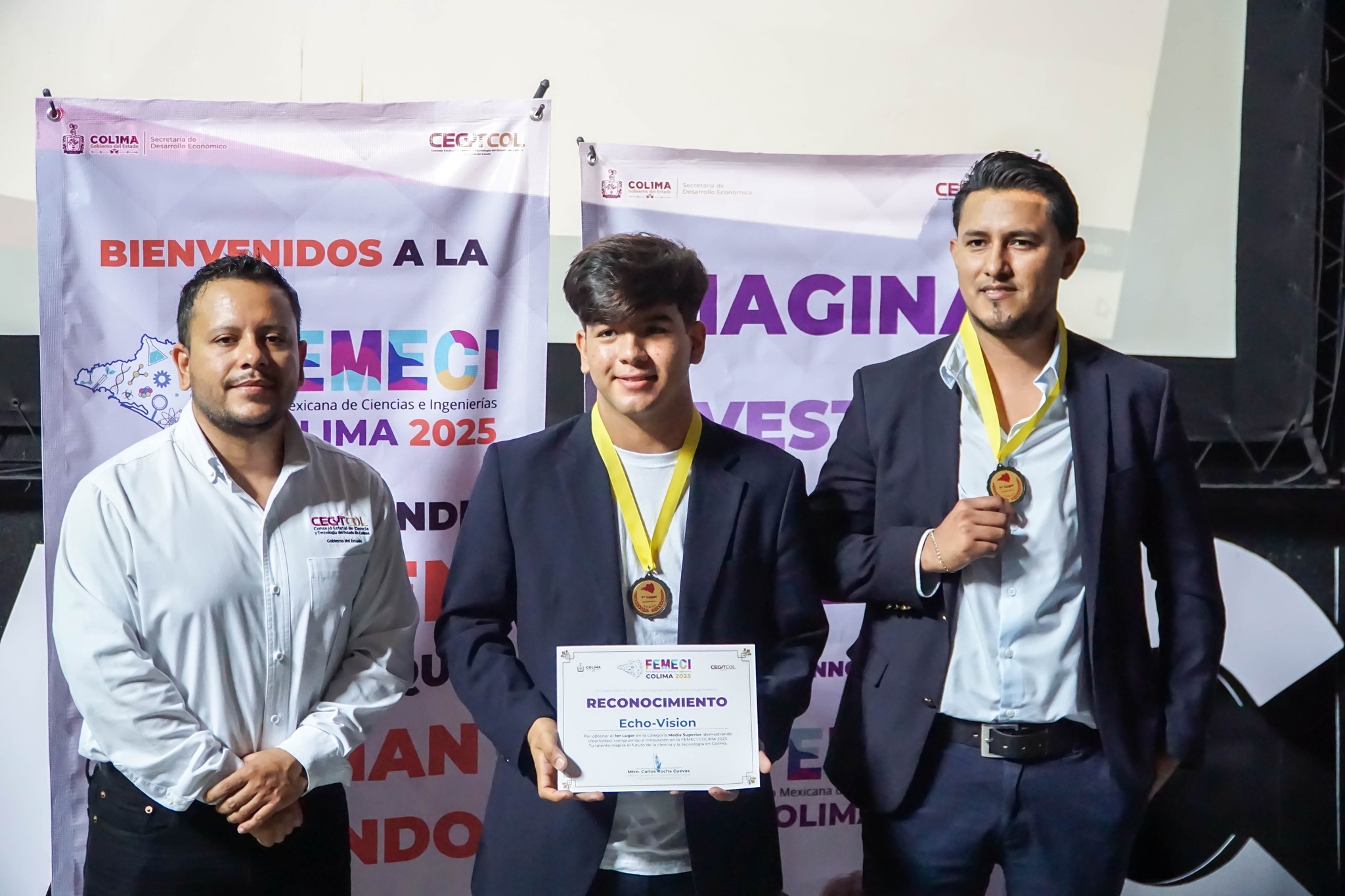 Con el proyecto Echo-Vision, un dispositivo electrónico portátil diseñado para asistir a personas con discapacidad visual, el estudiante Soren Daniel Guzmán Denis, del Bachillerato 16 de la Universidad de Colima, obtuvo el primer lugar en la categoría Media Superior de la Feria Mexicana de Ciencias e Ingeniería (FEMECI) Colima 2025, organizada por el Consejo Estatal de Ciencia y Tecnología (CECYTCOL).