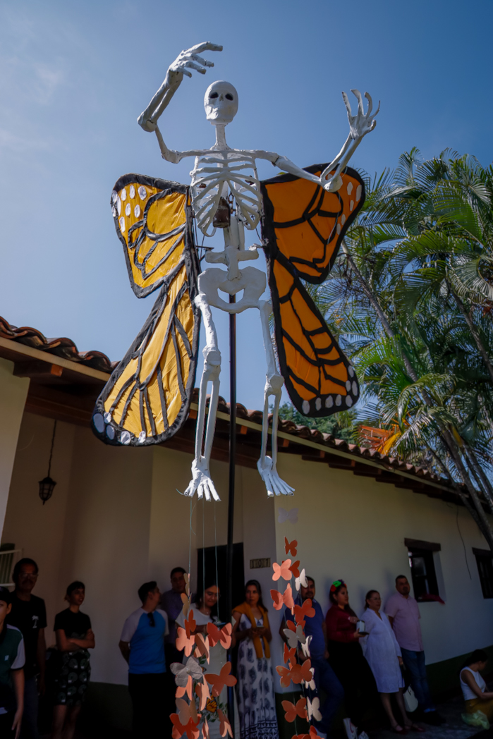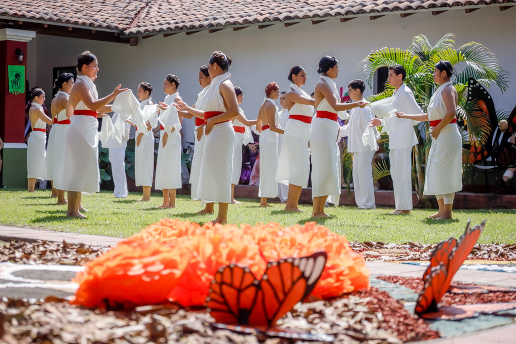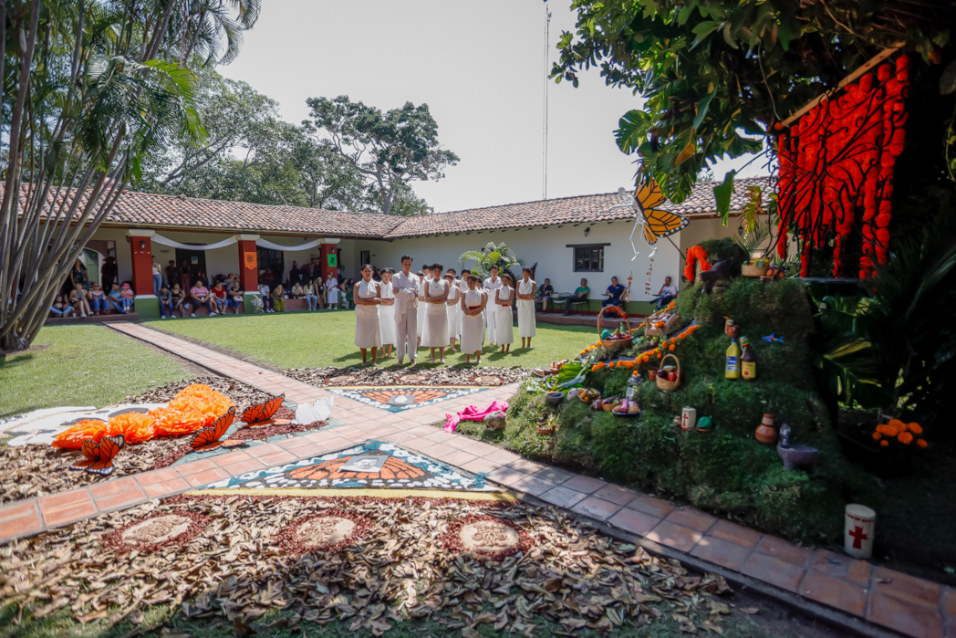 Explicó que esta actividad anual promueve “una experiencia llena de arte, comunidad, fiesta y tradición”. La han realizado en este plantel durante los últimos 12 años. Danza dorada se refiere a la mariposa monarca y su migración, entendida como un símbolo de la metamorfosis del mundo terrenal hacia el mundo de los muertos.