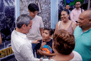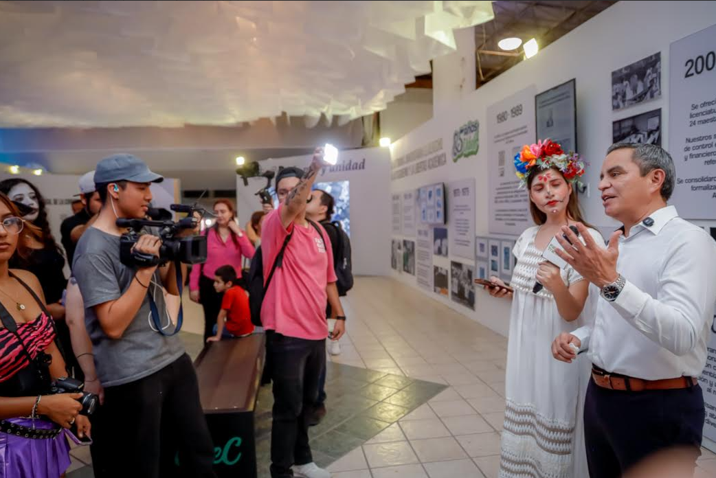 La gobernadora Indira Vizcaíno Silva participó en el recorrido inaugural, guiada por el rector Christian Jorge Torres Ortiz Zermeño, quien destacó los dos ejes centrales del concepto: el 85 aniversario de la casa de estudios y el trabajo transversal en torno a la cultura de paz.
