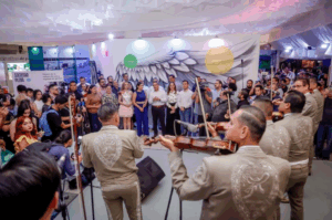 El primer grupo artístico en presentarse, tras el corte de listón inicial, fue el Mariachi Universidad de Colima, que recientemente lanzó un disco dedicado a la obra de José Alfredo Jiménez, en el marco del homenaje nacional por el centenario del nacimiento del cantautor guanajuatense. Su actuación abrió el programa musical del pabellón, que paulatinamente se extenderá hacia múltiples géneros y formatos.