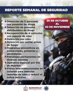 Durante esta semana también se llevaron a cabo operativos especiales de seguridad y vigilancia con motivo del Día de Muertos, en coordinación con Protección Civil y autoridades de seguridad estatales y federales.