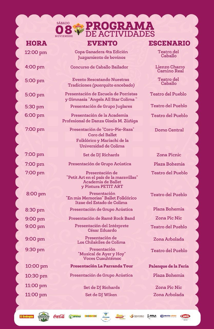La Feria de Todos los Santos 2025 inicia este sábado su segunda semana de actividades y continúa el ambiente de alegría y fiesta familiar con una jornada repleta de eventos para todos los gustos, destacando los programas ecuestres, las presentaciones artísticas y espectáculos musicales, expresó Rodolfo Aguilar Dávalos, director general del Instituto de Fomento de Ferias y Exposiciones (Iffecol) del Gobierno del Estado de Colima.