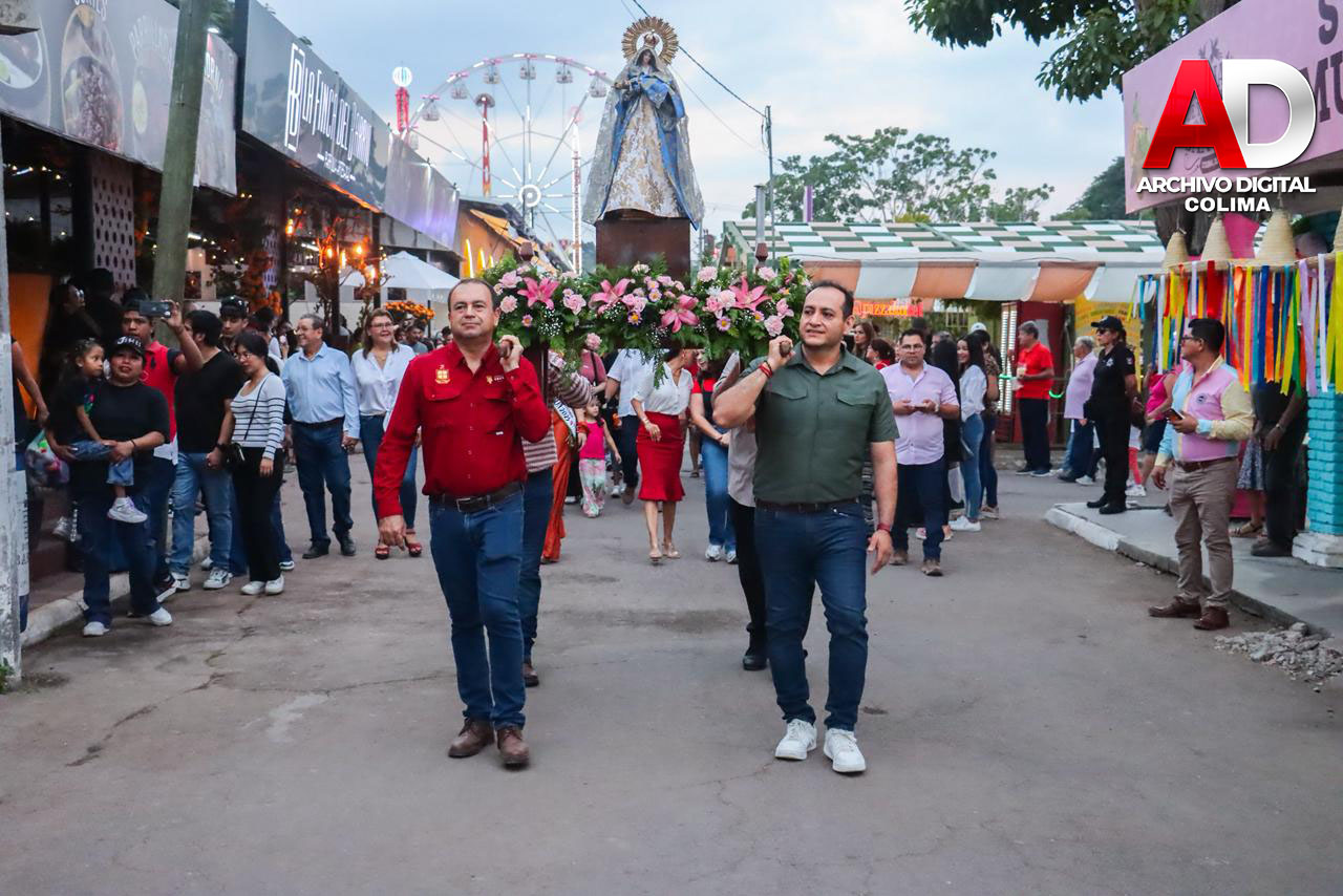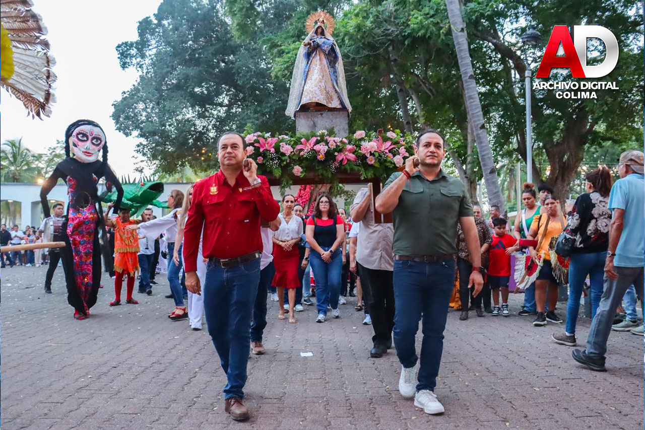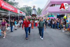 Durante esta participación también estuvo presente la imagen de la Virgen de la Candelaria, símbolo de identidad y tradición para las familias tecomenses. Su presencia acompañó la presentación artística, reforzando el sentido cultural y comunitario del evento.