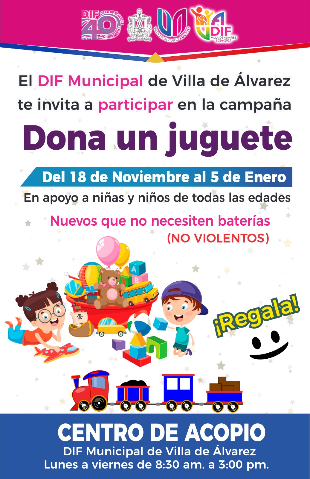 Villa de Álvarez, Col.- La Presidenta Tey Gutiérrez Andrade presentó las campañas de donación para la temporada navideña: Dona un Juguete, No los Tires Dónalos y Abrigando Corazones, cuyo inicio es a partir de este martes 18 de noviembre para concluir el 5 de enero de 2026.