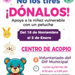 Martha Yadira Martínez, Directora del DIF Municipal, explicó que la campaña Dona un Juguete recibirá juguetes nuevos o usados en buen estado, que funcionen sin necesidad de baterías y no sean violentos; No los Tires Dónalos, es para colectar muñecos de peluche; mientras Abrigando Corazones es de cobertores, chamarras y ropa abrigadora nueva o usada en buenas condiciones.