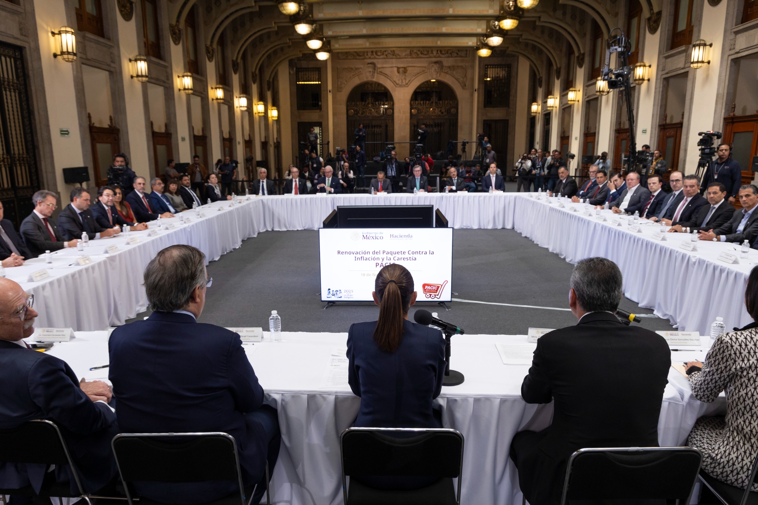 Ciudad de México, 18 de noviembre de 2025.- La Presidenta de México Claudia Sheinbaum Pardo firmó, con tiendas de autoservicio y agroindustrias, la renovación del Paquete Contra la Inflación y la Carestía (Pacic), que mantiene en 910 pesos el precio de los 24 productos de la canasta básica, es decir, no aumenta su precio y con ello se cuida la economía popular.
