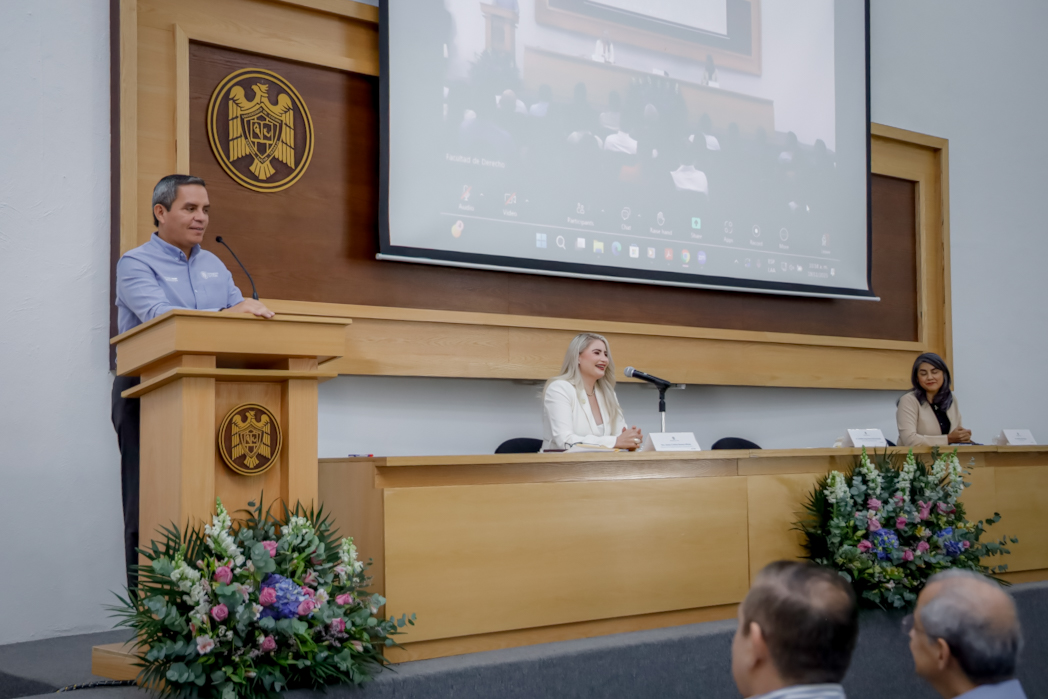 También resaltó la fortaleza de las y los egresados, los cuerpos académicos y la oferta de educación continua. “Son un muy buen ejemplo en la generación de recursos propios, lo que es vital para una universidad pública”. Destacó la fructífera relación interinstitucional con otras facultades y reconoció su visión. “La decisión que tomaron para ofrecer en el 2026 un programa de licenciatura de Derecho en línea es un paso adelante que muy pocas facultades han dado”.