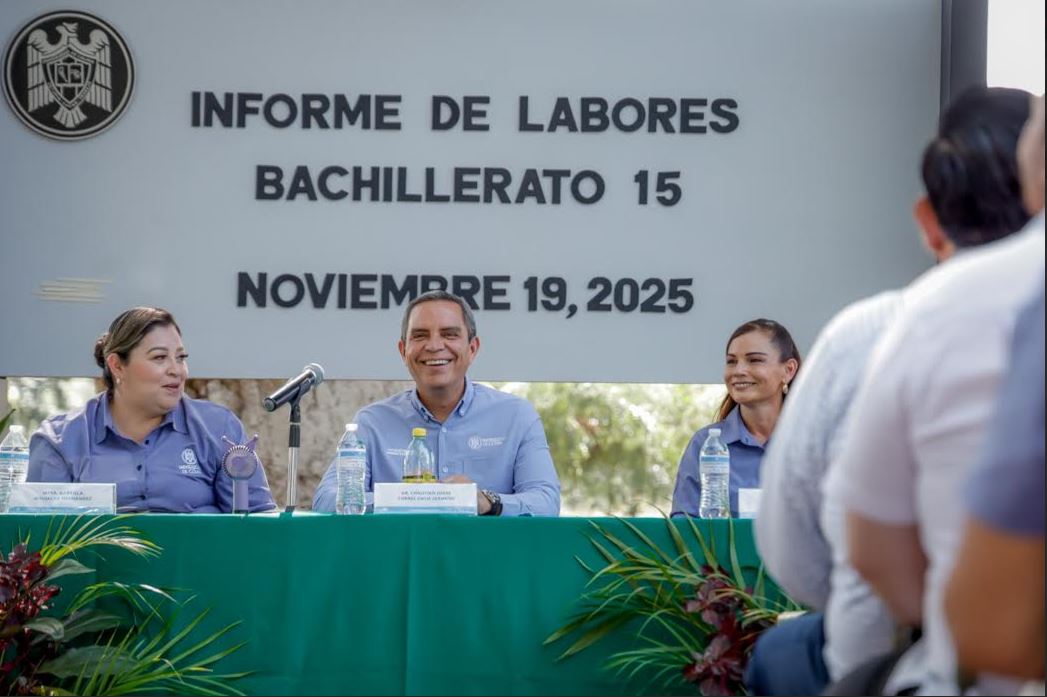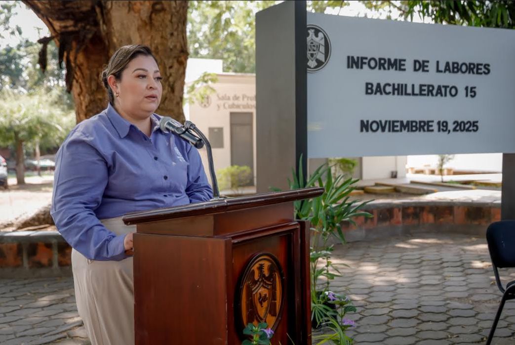 Martha Gabriela Ahumada, en evento aparte, compartió que el Bachillerato 15 es un plantel “que mira hacia el futuro con determinación, responsabilidad y espíritu universitario, porque aquí en cada salón, en cada proyecto y cada estudiante, late la fuerza de la educación y el deseo de transformar nuestro mundo”.