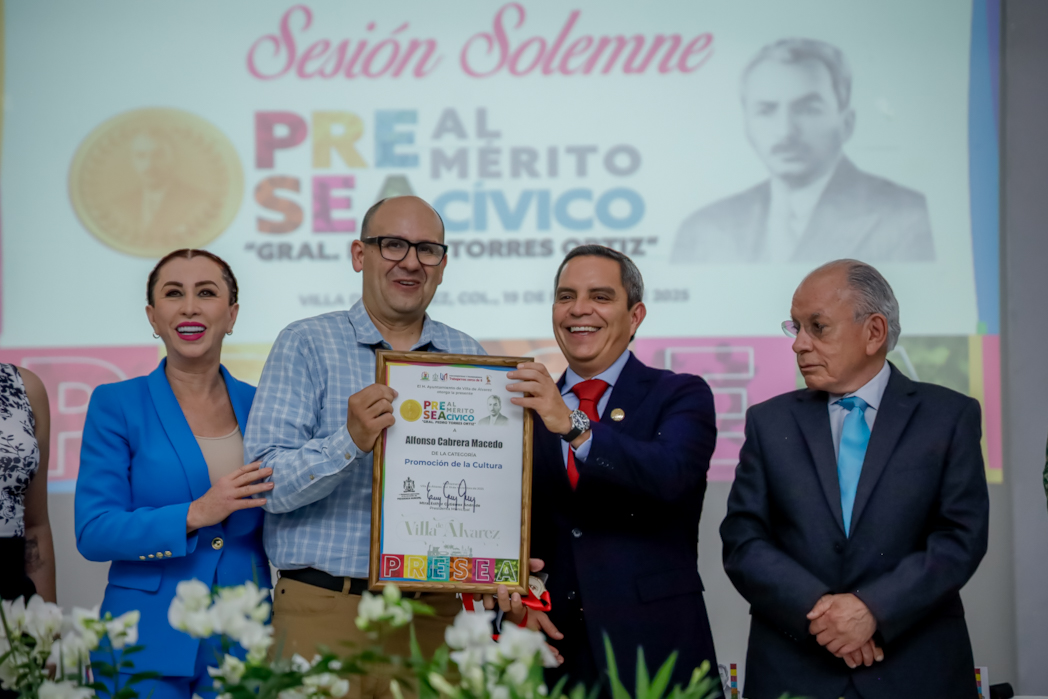La alcaldesa señaló que esta presea cobra sentido “cuando sirve de estímulo y ejemplo para todas y todos”. Destacó que con ella, Villa de Álvarez “honra a uno de sus más grandes hijos, cuya herencia es guía, y con ella se ratifica nuestra decidida fe en el ser humano y en su bien actuar como ejemplo para futuras generaciones”.