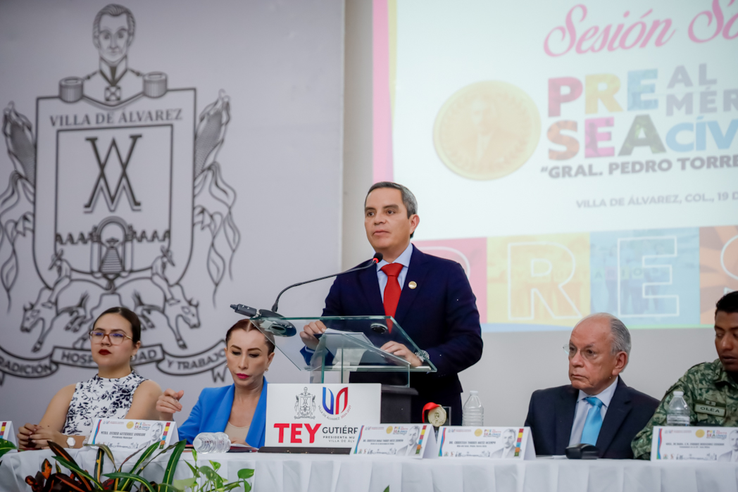 La Presea al Mérito Cívico “General Pedro Torres Ortiz”, dijo en su discurso el rector de la Universidad de Colima, Christian Torres Ortiz Zermeño, “simboliza el valor del compromiso, del esfuerzo y de la vocación de servicio que cada galardonada y galardonado demuestra desde su ámbito: la cultura, el deporte, los derechos humanos, la salud o la participación ciudadana”.
