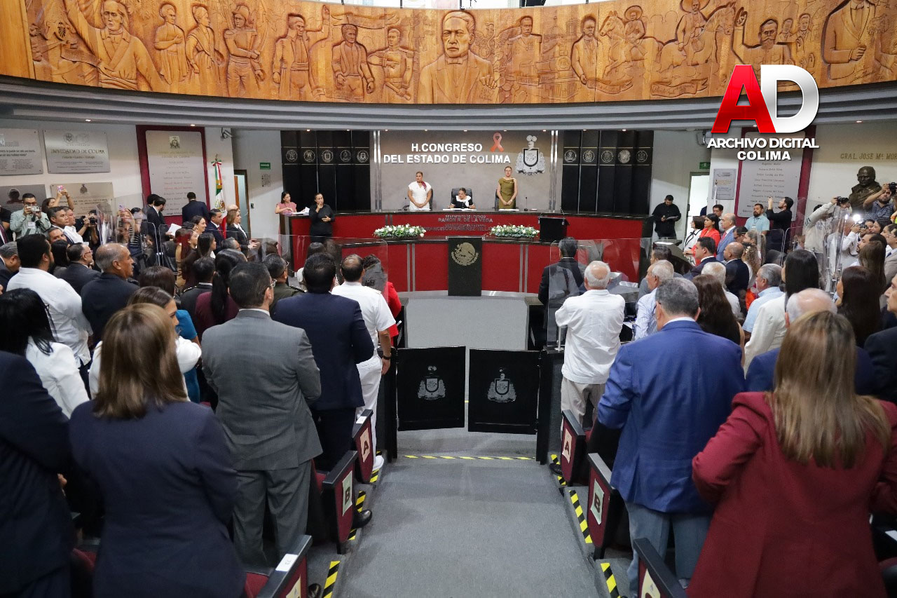 La LXI Legislatura del H. Congreso del Estado de Colima, con la presencia del Magistrado presidente del Tribunal Superior de Justicia del Poder Judicial del Estado, recibieron el documento oficial con el contenido del estado que guarda la administración pública estatal, mediante un resumen de los logros, programas y acciones implementadas, así como el desglose del presupuesto utilizado durante 2025.