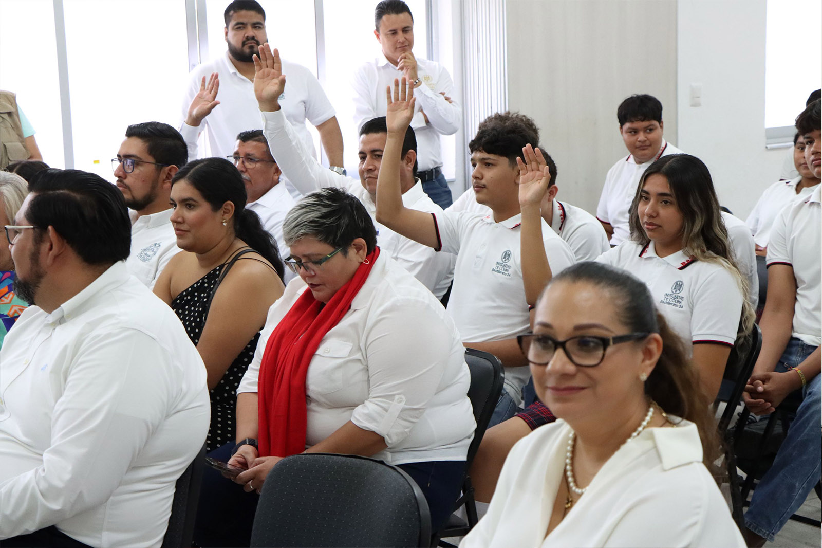 También: Priscilia Álvarez, directora general de Recursos Humanos; Luz María Urzúa, directora general de Recursos Materiales; Rodolfo Morentín, director general de Servicio Social y Práctica Profesional; Jaime Novela, presidente de la FEC y Aristeo Vizcaíno, director del Bachillerato 24.