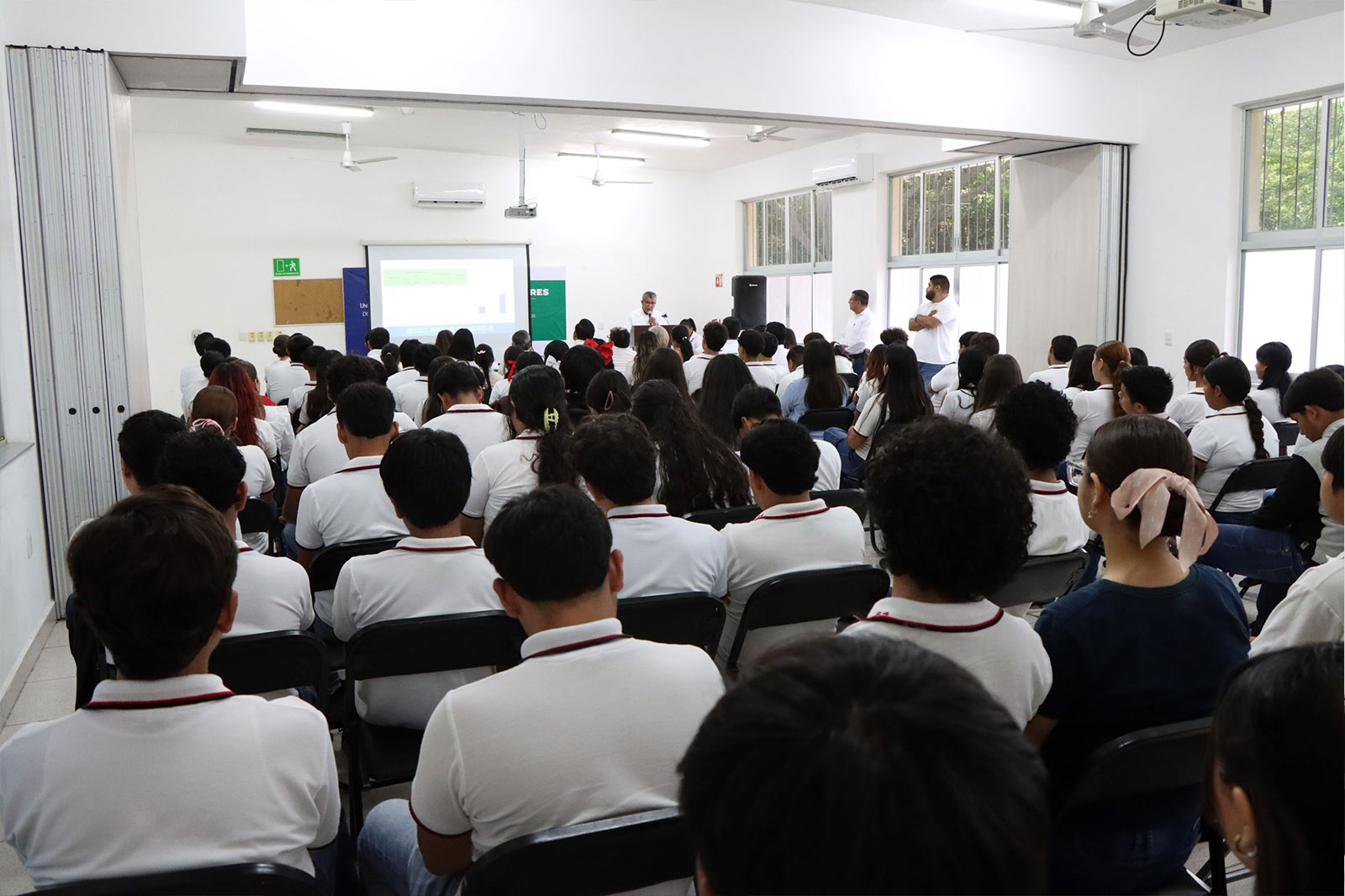 Además, gracias a un convenio con la empresa Holcim, se rehabilitó la cancha de usos múltiples, se reconstruyó el muro de identificación del plantel y se mejoró el andador de acceso. Vizcaíno agradeció el apoyo institucional: “Los compromisos hechos con este plantel se cumplieron en su totalidad, y aún más. Hoy contamos con aulas cómodas, equipo nuevo y espacios que influyen positivamente en el aprendizaje”.
