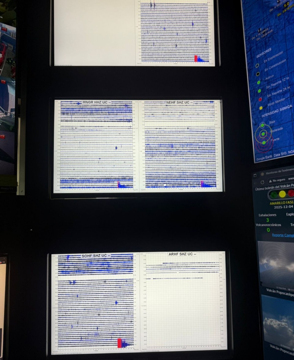 Los sistemas de monitoreo remoto también muestran condiciones normales: tanto las cámaras de luz visible, como la cámara térmica ubicada al norte del Coloso de Fuego no detectaron señales adicionales como incandescencia, crecimiento de domo, flujos de lava, caída de ceniza o flujos piroclásticos.
