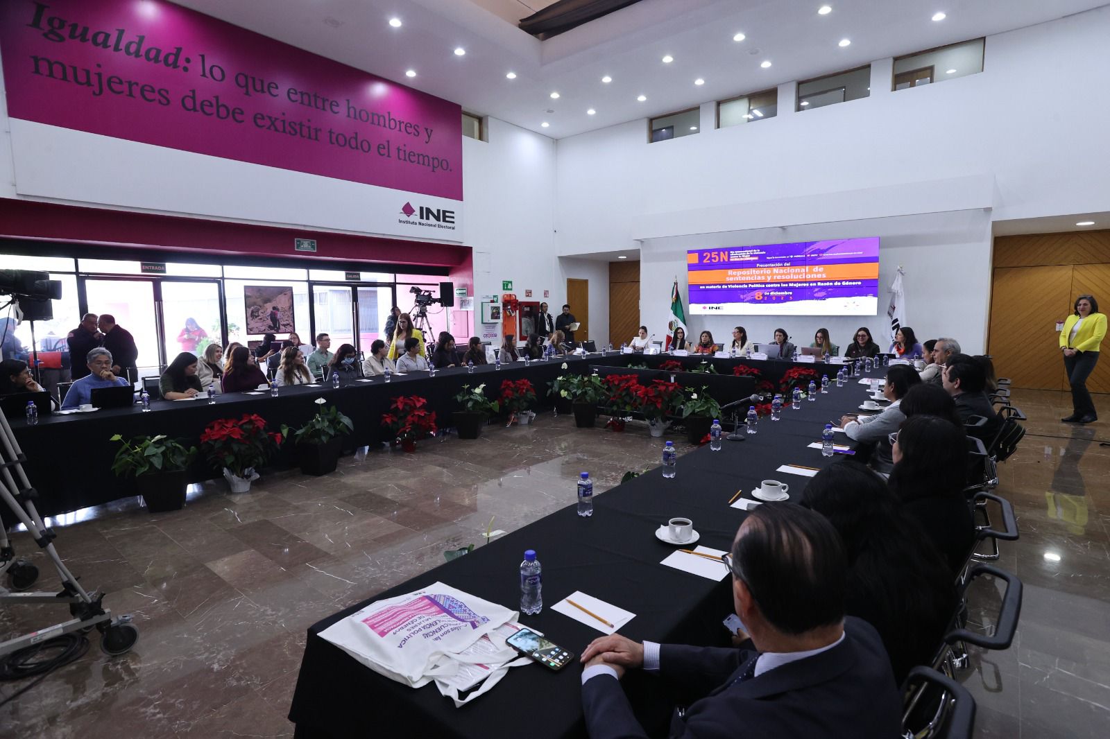 En el Lobby del Instituto, acompañada de la Directora de la Unidad Técnica de Igualdad de Género y No Discriminación, Flor Dessiré León Hernández, académicas, investigadoras e integrantes de la Junta General Ejecutiva, la Consejera Zavala especificó que, inicialmente, el Repositorio se presenta con 81 sentencias, 49 a nivel federal y 32 a nivel local, aunque la aspiración es llegar a 268 sentencias a nivel federal, más todas las que se generen en el ámbito local.