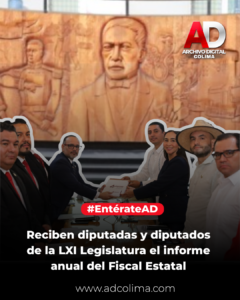 El documento entregado al presidente de la Mesa Directiva del Legislativo, Alvaro Lozano González, y a la presidenta de la Junta de Gobierno y Coordinación Política (JUCOPO), Andrea Naranjo Alcaraz, corresponde al cuarto informe de actividades que comprende el periodo de noviembre de 2024 a octubre 2025, detallando el estado que guarda el sistema de procuración de justicia en Colima.