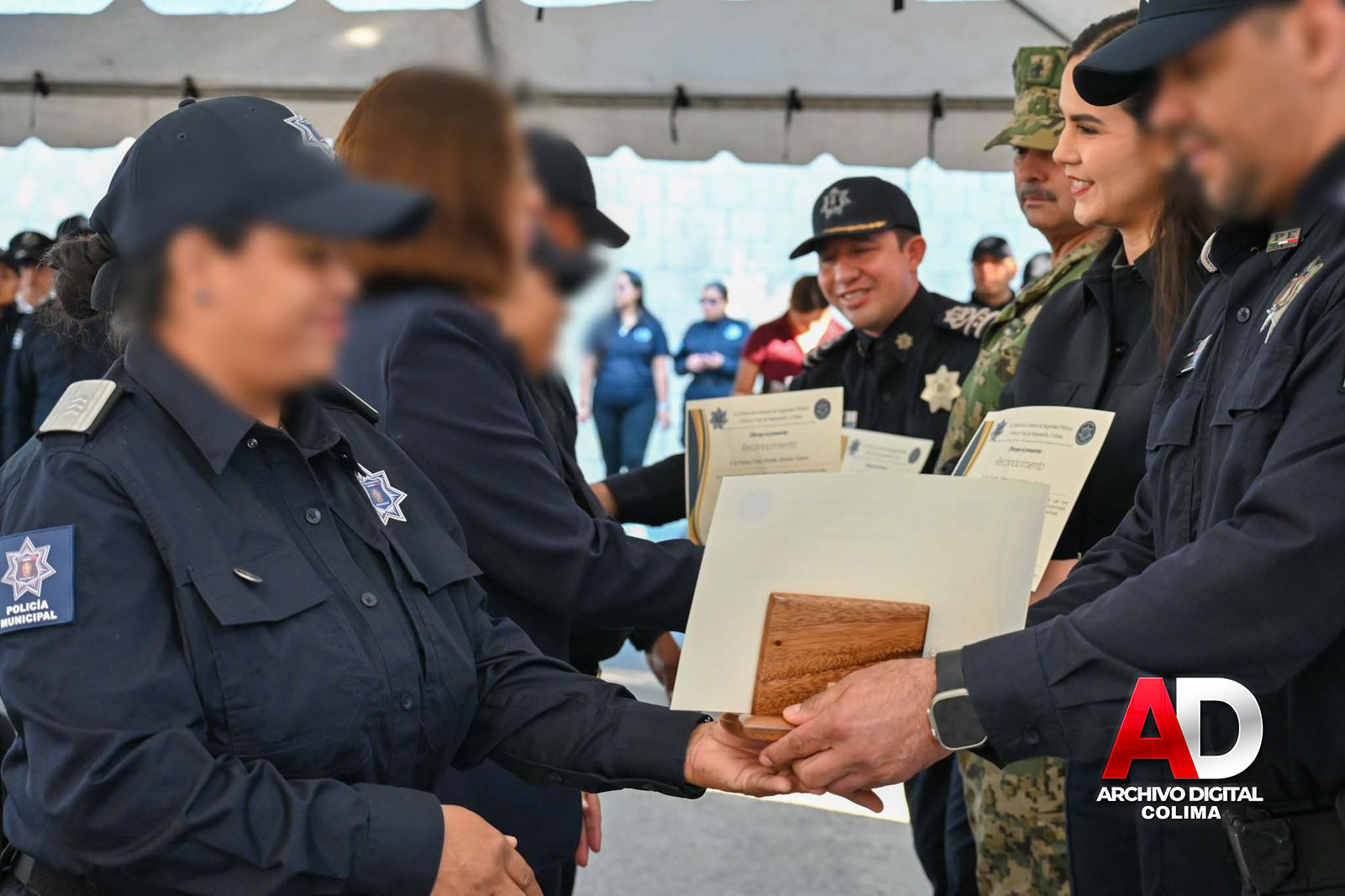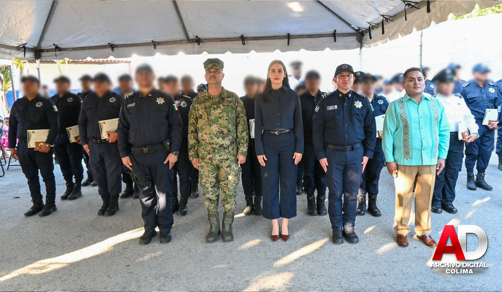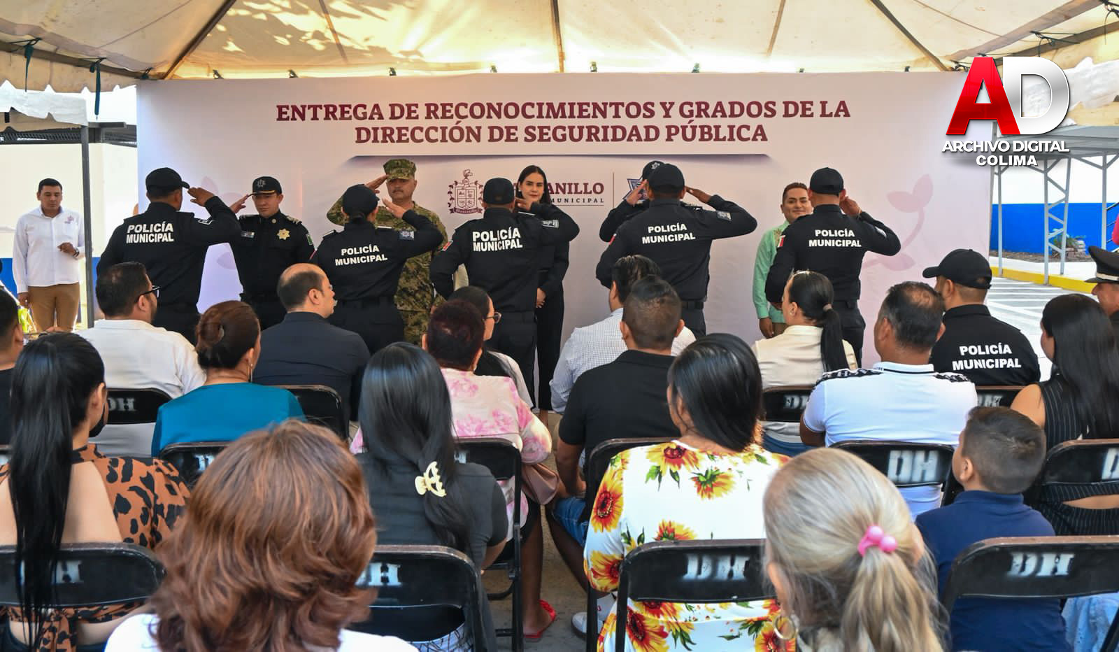 Este lunes, la presidenta municipal de Manzanillo, Rosa María Bayardo Cabrera, encabezó el evento de entrega de reconocimientos y ascensos a elementos de los cuerpos policiales, realizado en el Complejo de Seguridad Municipal.