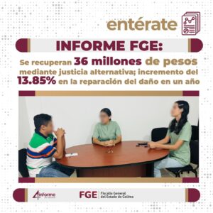 La Fiscalía General del Estado (FGE), a través de la Dirección de Soluciones Alternas, consolidó durante el periodo comprendido del 01 de noviembre de 2024 al 31 de octubre de 2025 uno de los resultados más relevantes en favor de las víctimas, al fortalecer los mecanismos alternativos de solución de controversias y la reparación del daño.