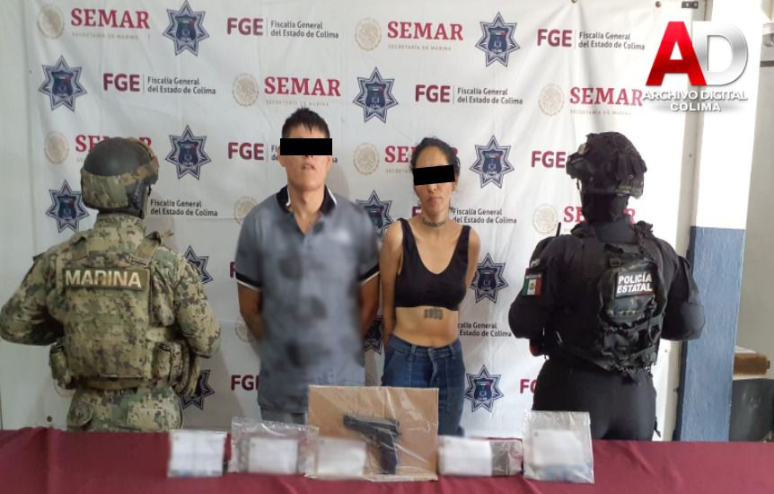 -En Colima, en la colonia Santa Elena, elementos de la Secretaría de Marina (Semar) y Policía Municipal, al realizar recorridos de seguridad, detuvieron a dos personas, les aseguraron 30 dosis de metanfetaminas, una réplica de arma corta y dos celulares.